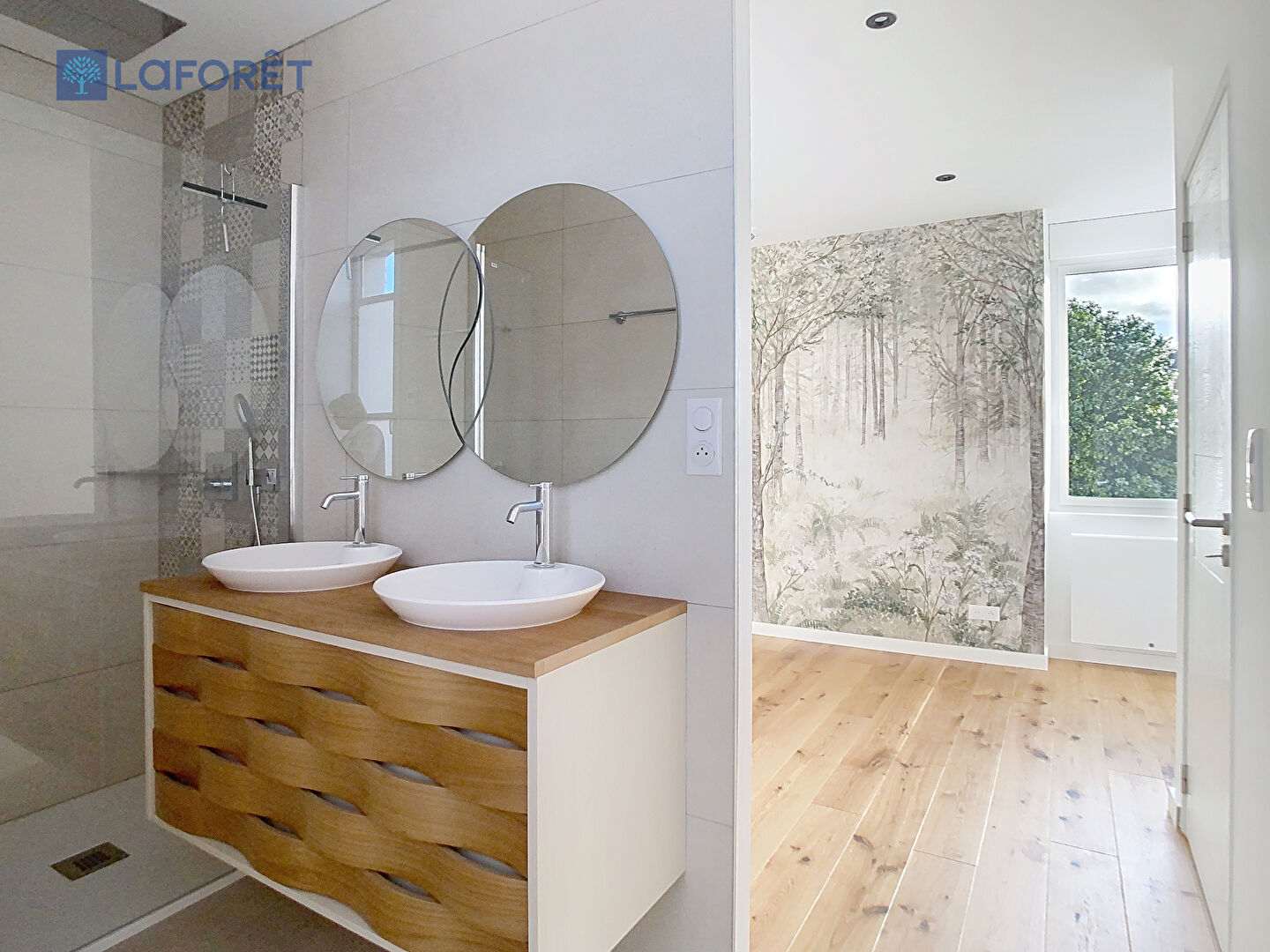 Au 1er étage, le palier dessert deux belles chambres avec dressing et placard. Chacune disposant d'une salle d'eau privative. Local technique/buanderie, WC.