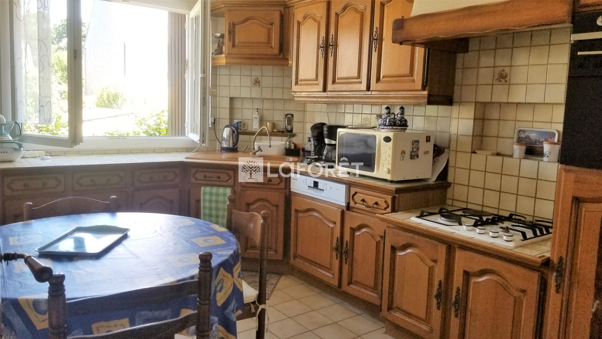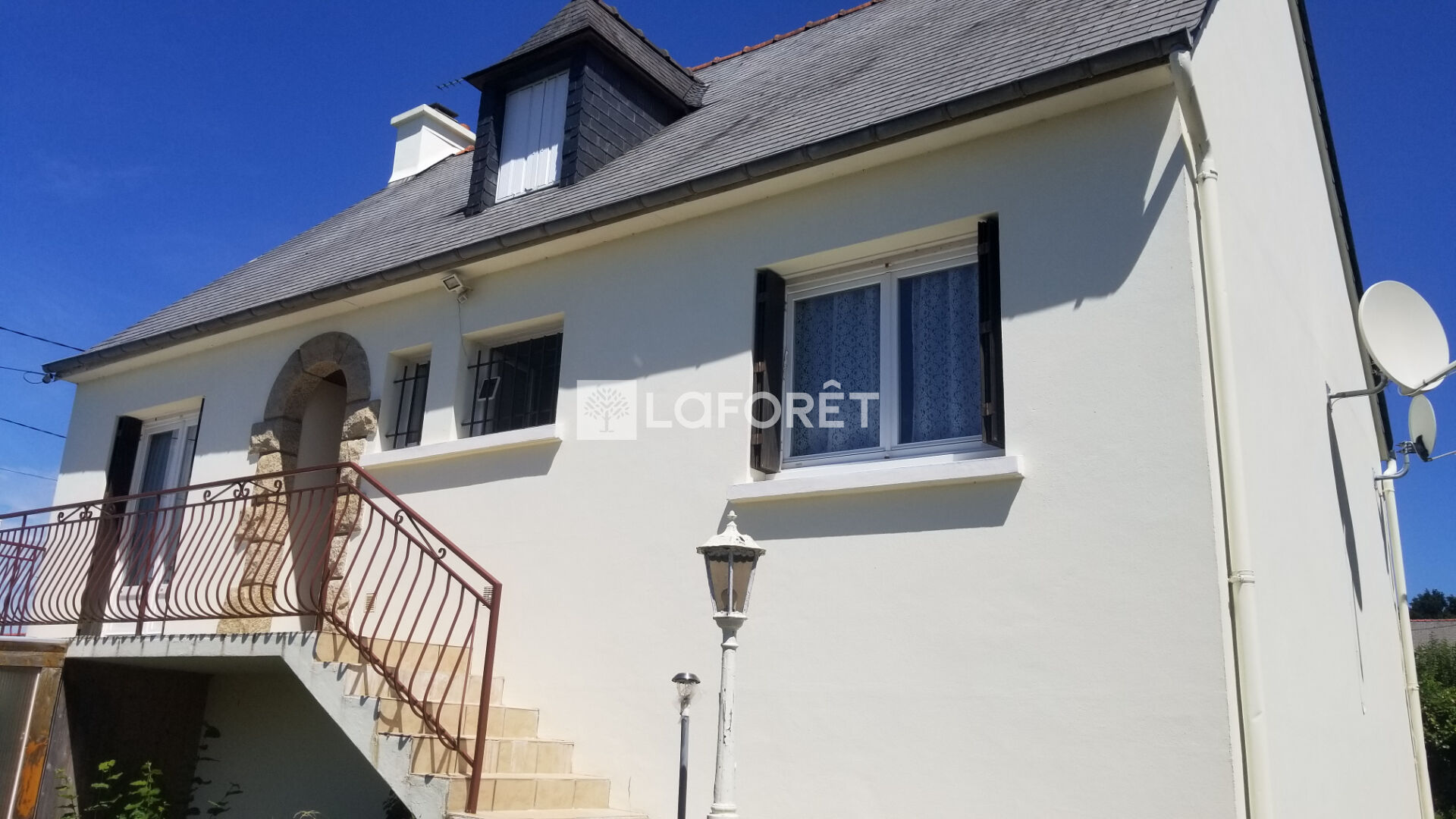 A 2 km de GUINGAMP. En impasse, maison sur sous sol total comprenant entrée, salon séjour avec cheminée, cuisine aménagée et équipée, une chambre, bureau, salle d'eau, wc. A l'étage palier, deux chambres, bureau, grenier. Un abris de jardin. un carport. Un terrain d'environ 400 m².
