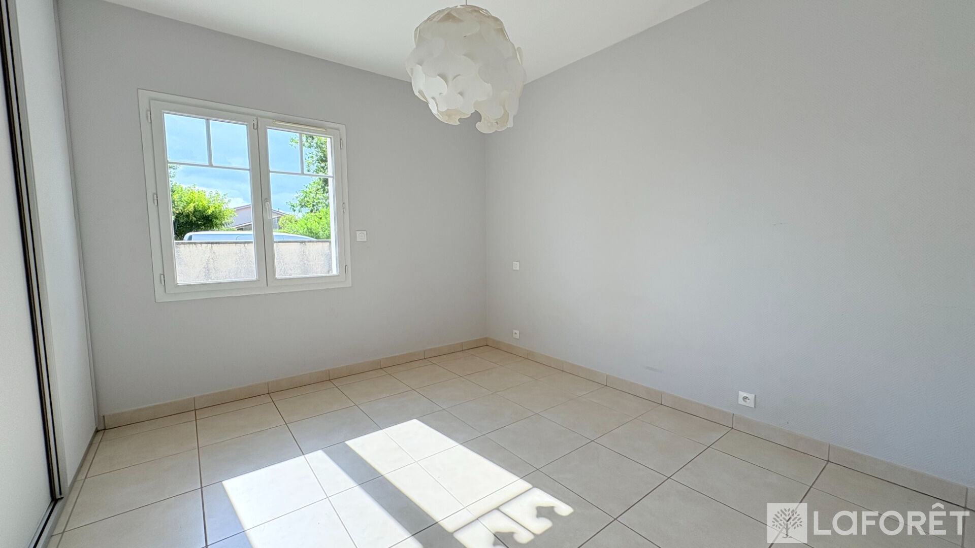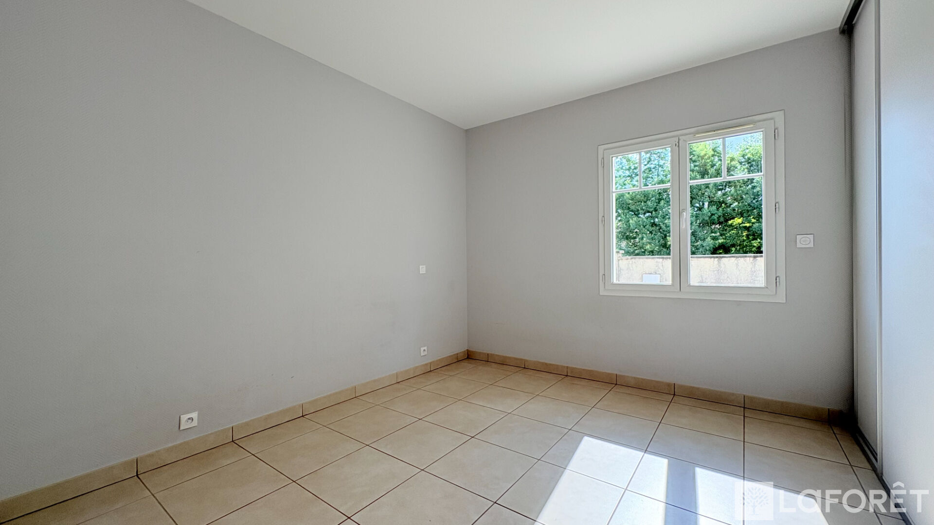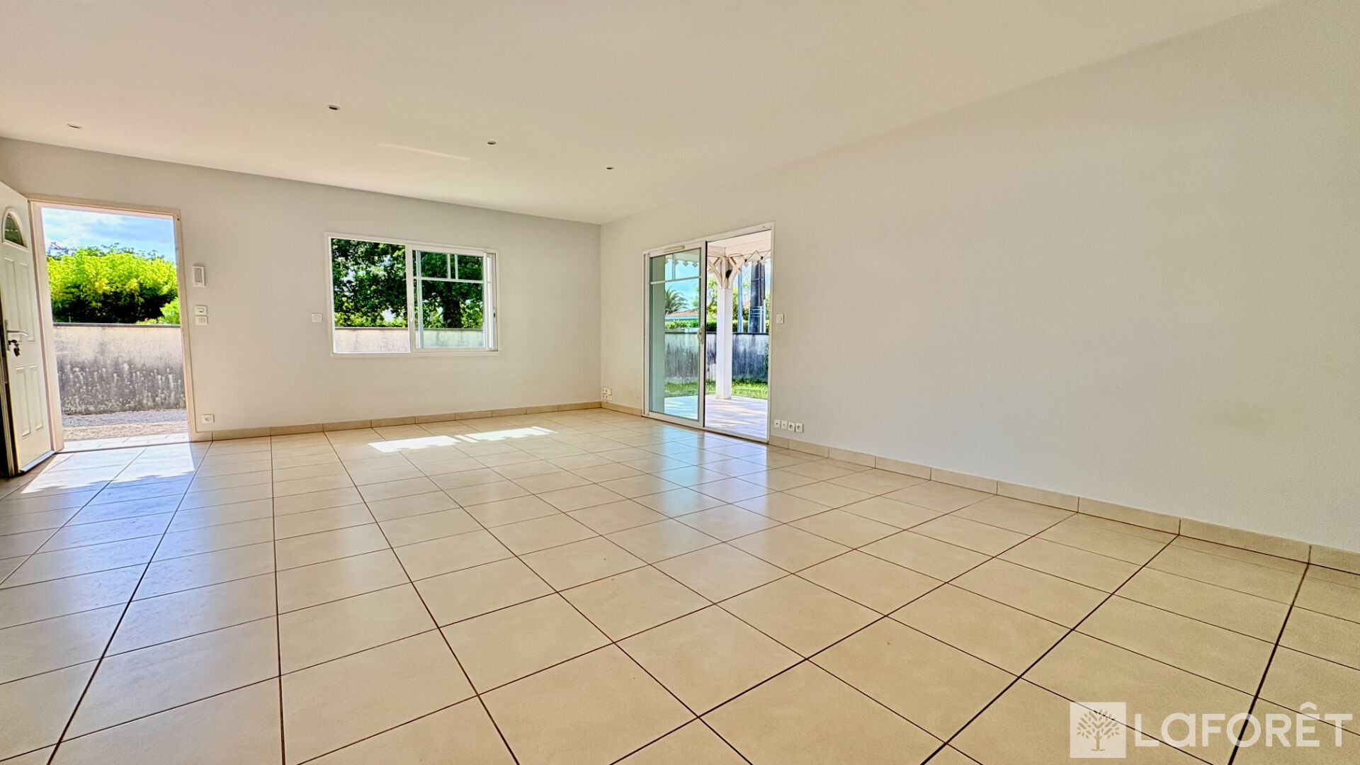 La pièce de vie, lumineuse et traversante donne accès à une terrasse carrelée d'environ 25 m2 exposée plein sud.