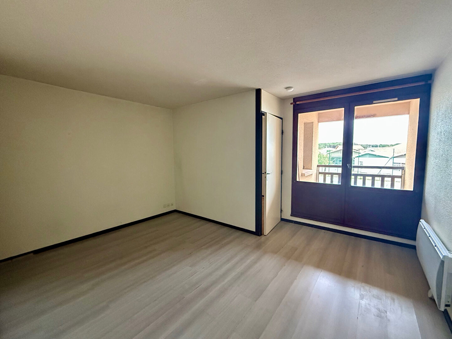Appartement T1 bis au 1er étage comprenant : une entrée, pièce principale avec coin cuisine aménagé, espace nuit indépendant et salle d'eau avec WC. L'appartement dispose également d'un balcon, sans vis-àvis. Résidence située en plein centre de Biscarrosse Plage, à deux pas des commerces.