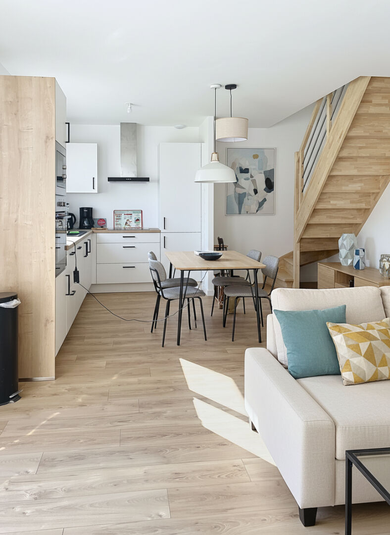 Proche du bourg, cette maison de près de 95 m² au sol offre une vie complète de plain pied avec sa suite parentale, cuisine entièrement aménagée et équipée ouverte sur le salon donnant dans le jardin par sa grande baie. À l'étage une salle de bains avec WC ainsi que 3 chambres. Un grand cellier et un jardin complètent ce bien
