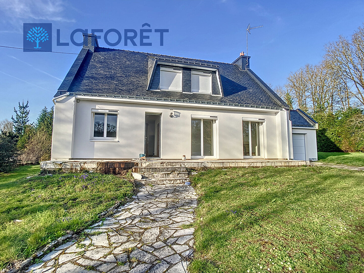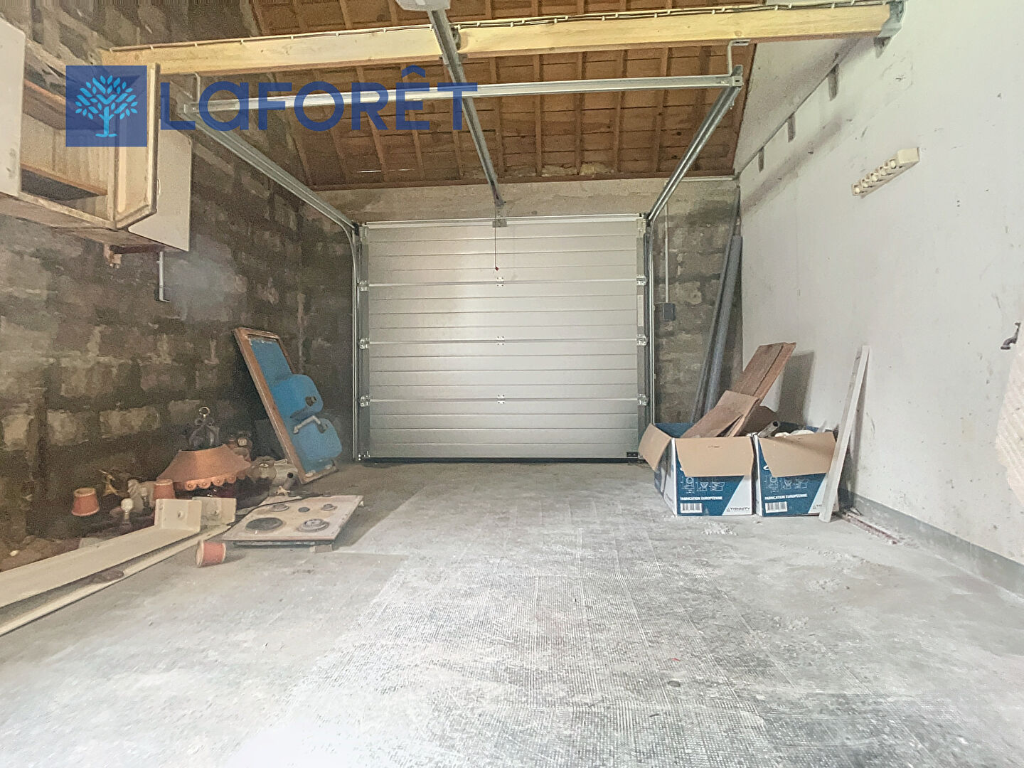 Un garage avec porte motorisée complète ce bien, ainsi que deux abris extérieurs situés dans le jardin.