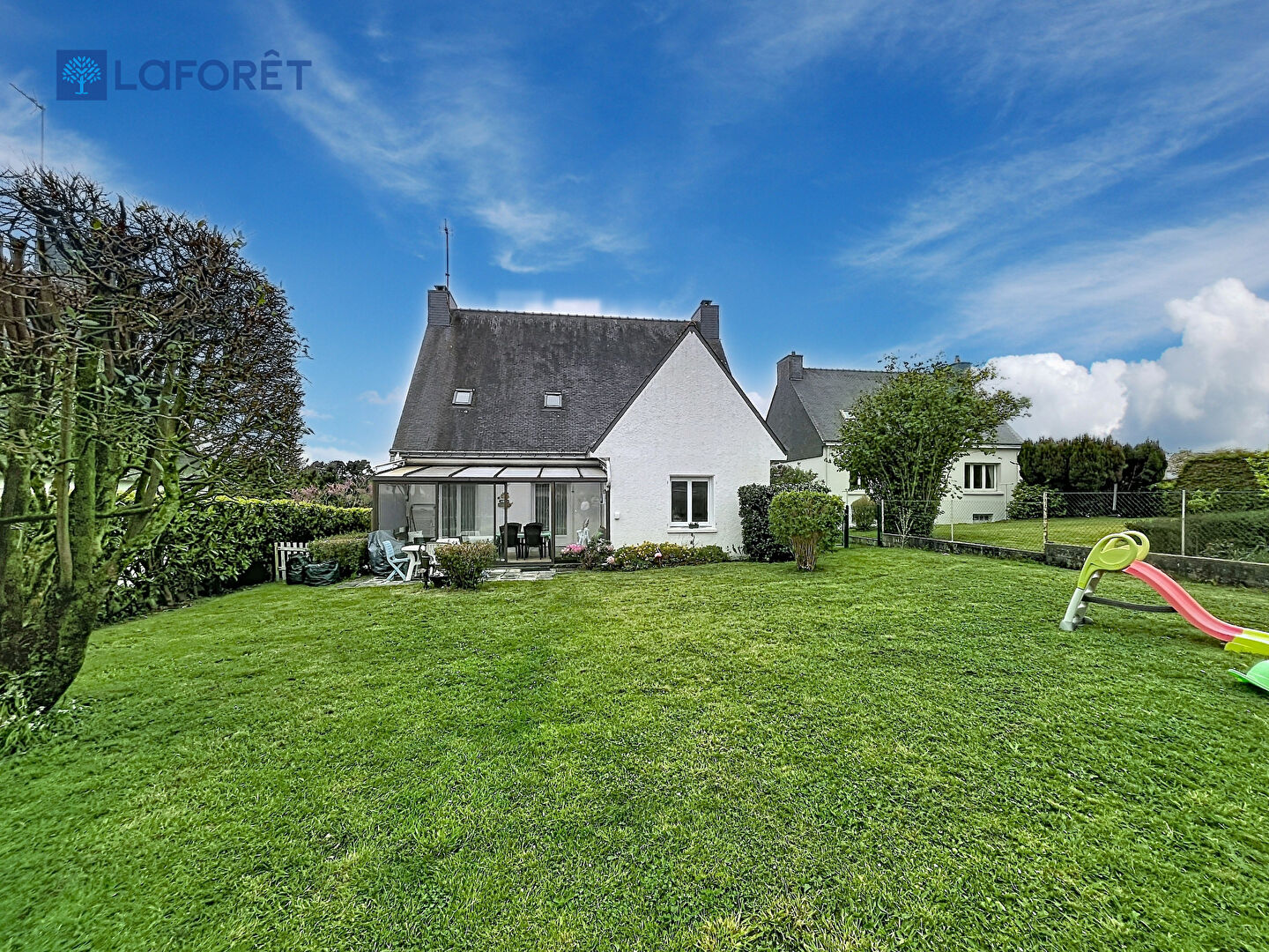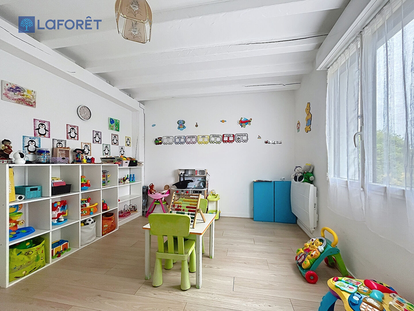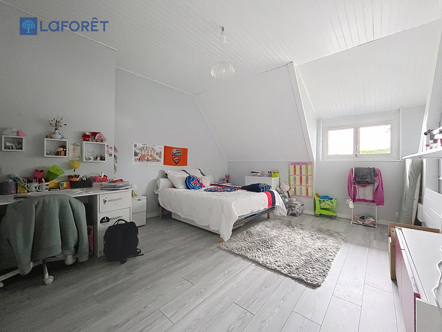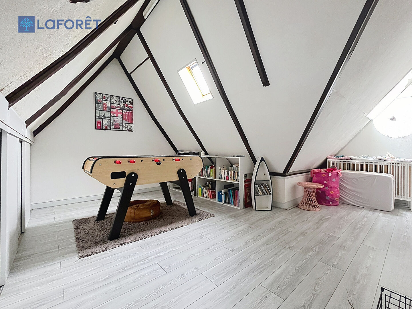 A l'étage, vous trouverez 3 chambres, salle de jeux, une buanderie, ainsi qu'une salle de bains.