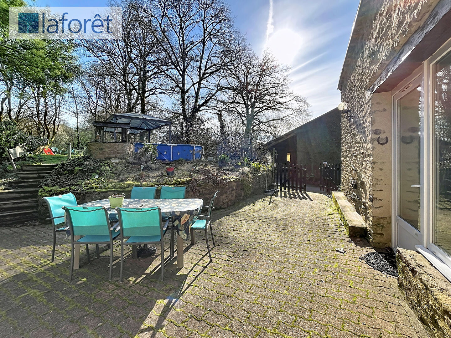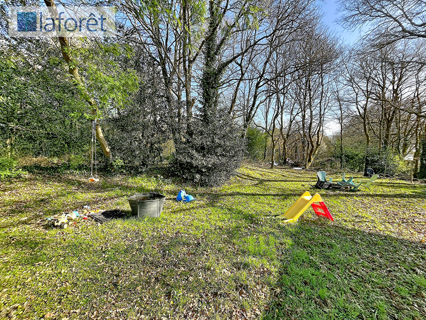 À l'extérieur, vous profiterez d'un agréable jardin clos sur une parcelle d'environ 469 m². Un bois à proximité immédiate invite à de belles promenades en pleine nature.