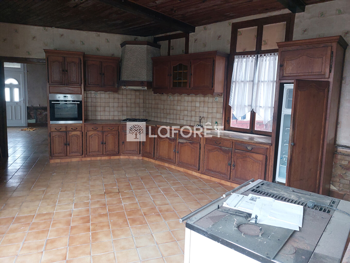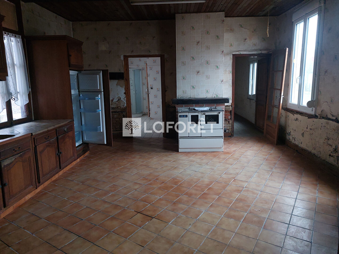 Elle dispose d'une vaste pièce d'entrée avec cheminée et poêle à pellets , une grande cuisine avec feu à pellets, 2 chambres et une salle d'eau.