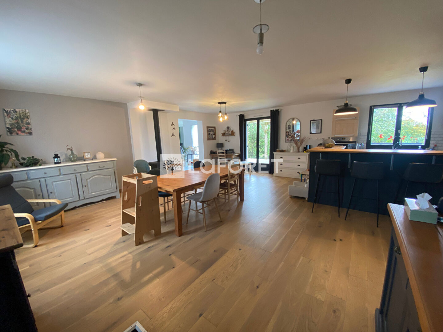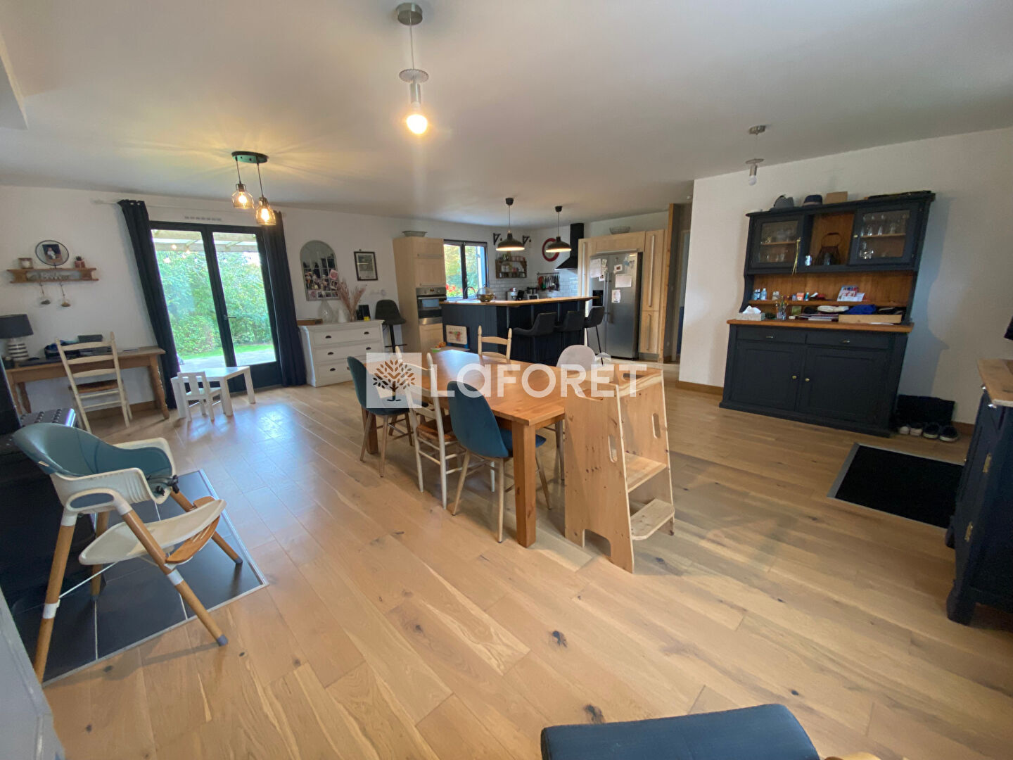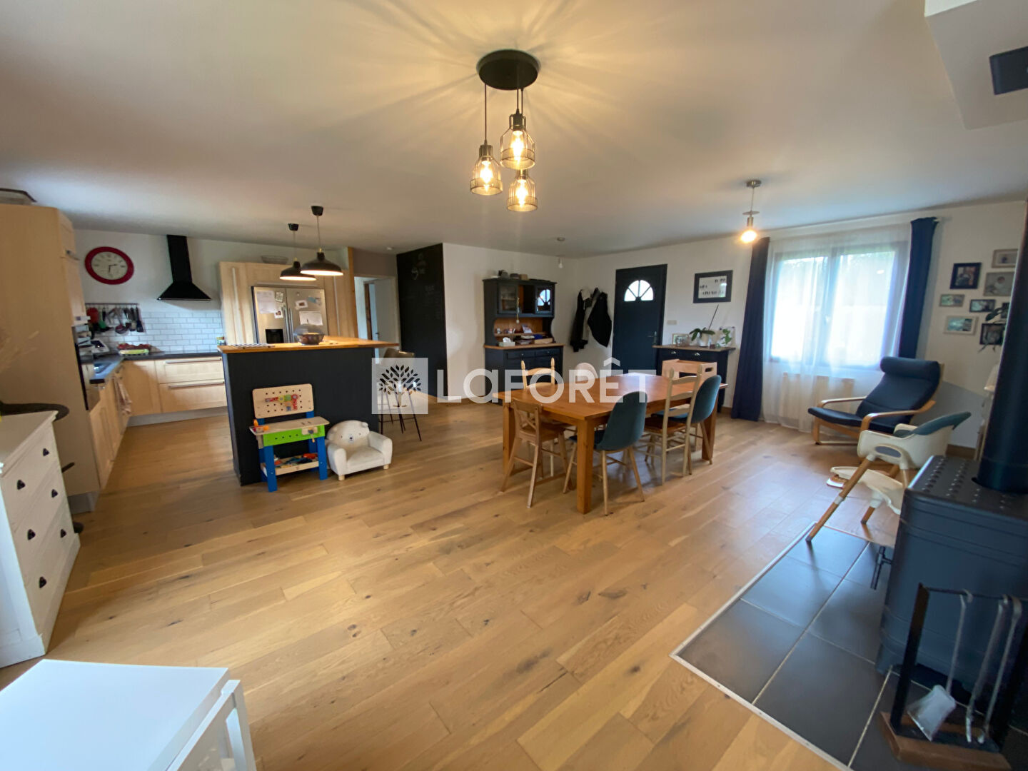 Un vaste séjour avec coin cuisine équipée (50m²) avec poêle à bois, Salon avec poêle au pellet, Salle de jeux, cellier, 4 chambres dont une avec dressing , 2 salles de bains,