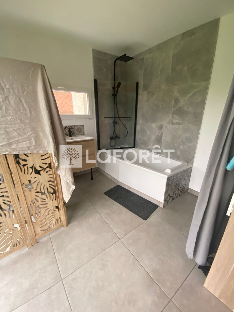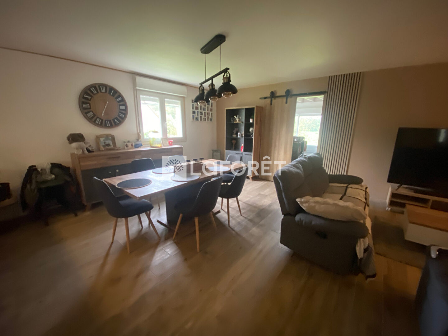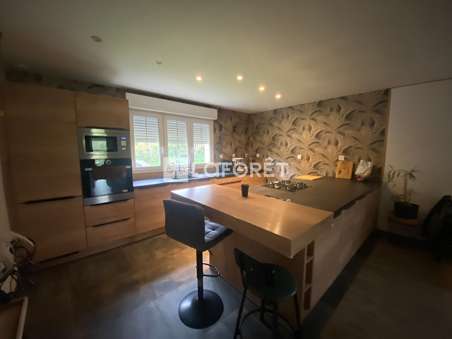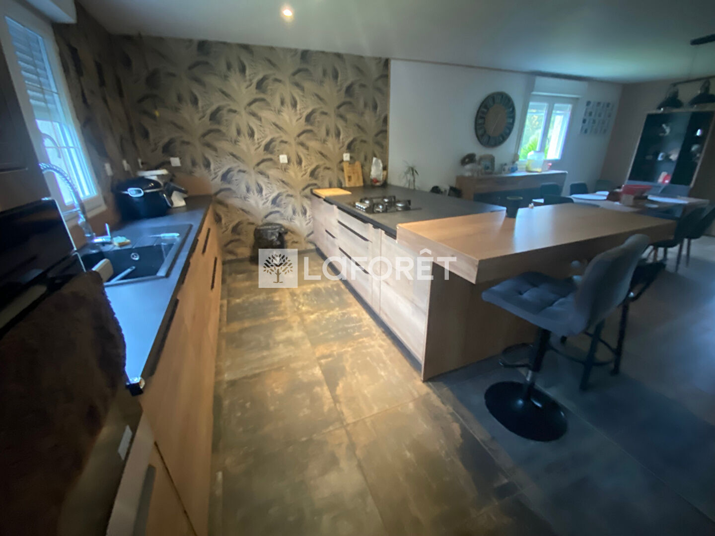 Hall d'entrée, Cuisine équipée récente ouverte sur le séjour salon avec poêle au pellet, Chambre avec salle de bains attenante, Chambre, salle de bains et lingerie WC
