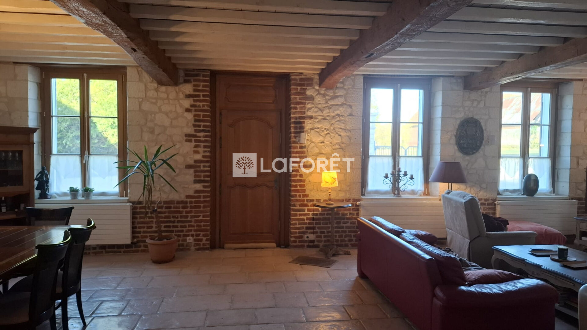 Une salle de réception de 70 m² entièrement rénovée avec charpente apparente et grande cheminée pour des soirées en famille ou entre amis.