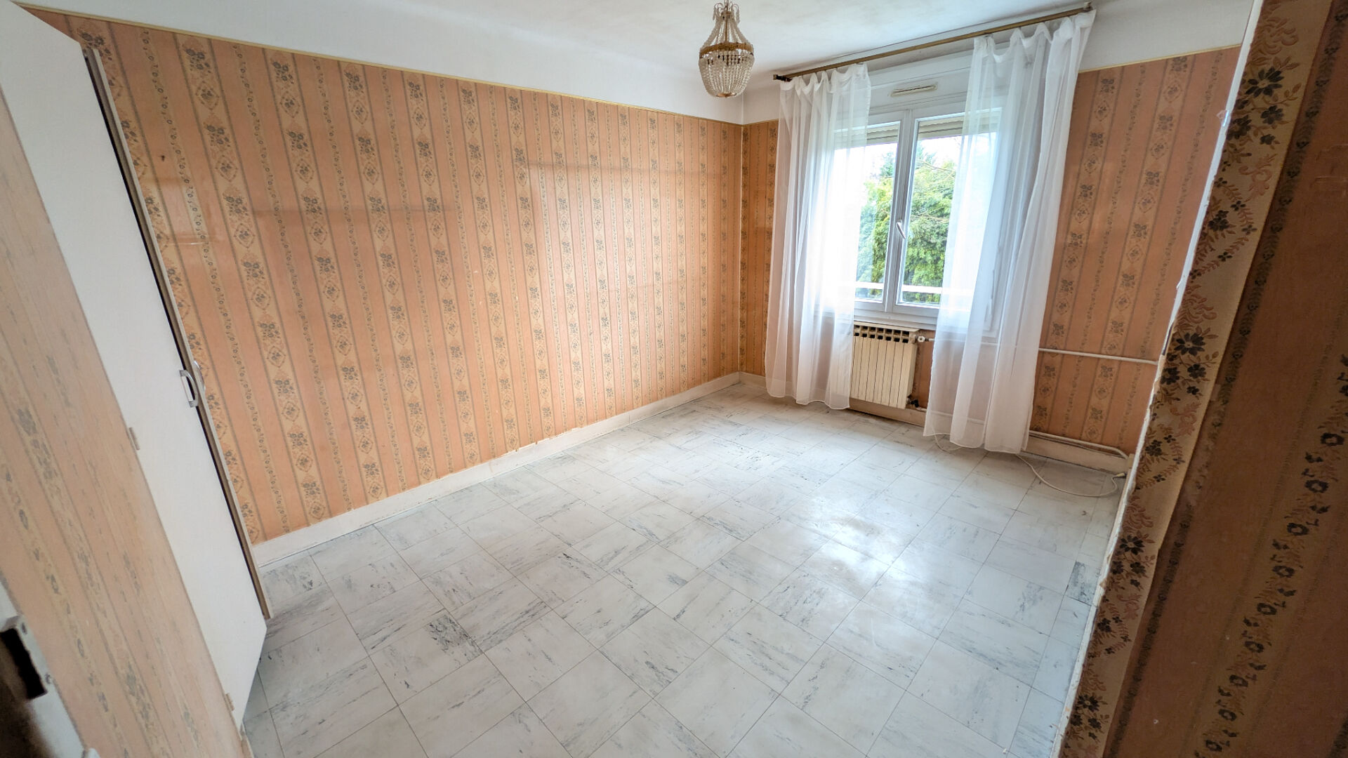 F4 à rénover comprenant entrée, cuisine, cellier, séjour, 3 chambres, salle de douche, dégagement et rangement. Le séjour donne sur un espace vert avec une belle orientation Sud. Double vitrage.
