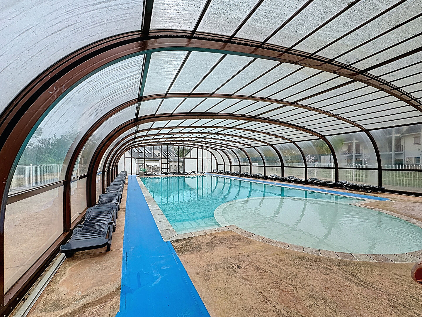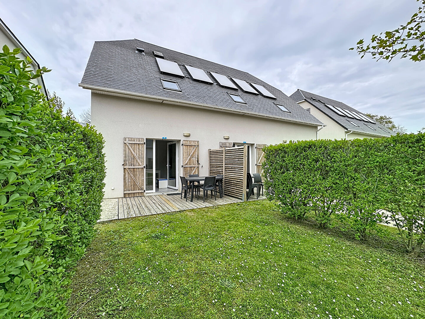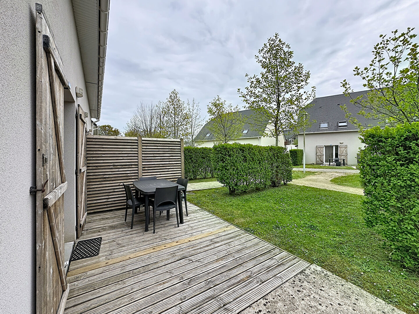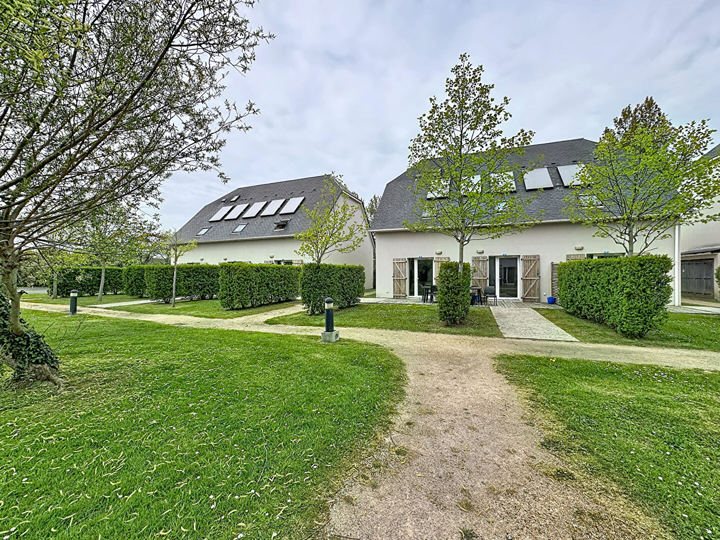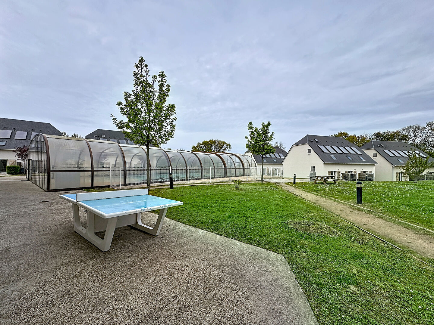 La résidence, sécurisée et arborée, offre de nombreux équipements tels qu'une piscine et des espaces de jeux pour enfants. Elle se situe à seulement 4 km de la plage d'Houlgate, dans un environnement calme et verdoyant.