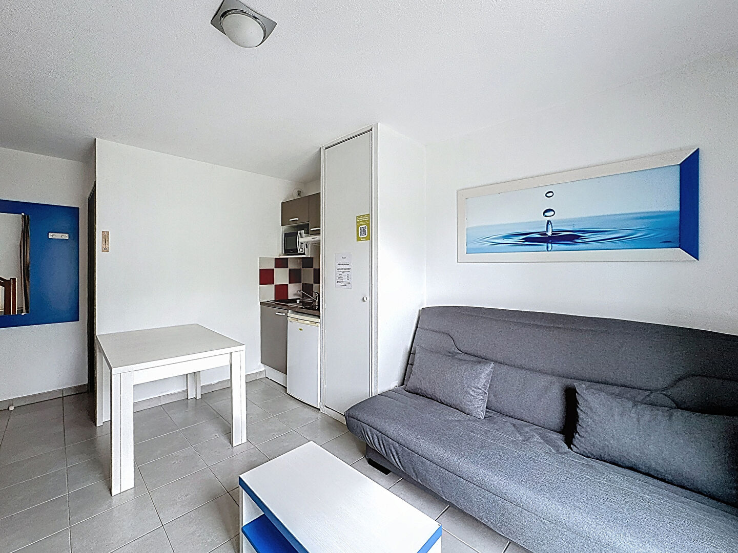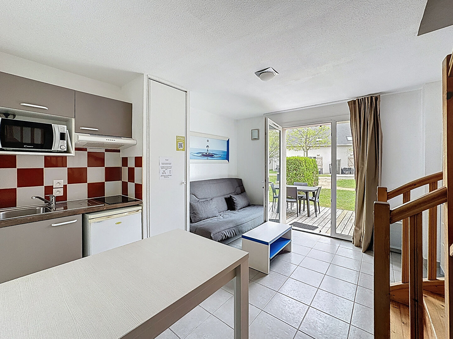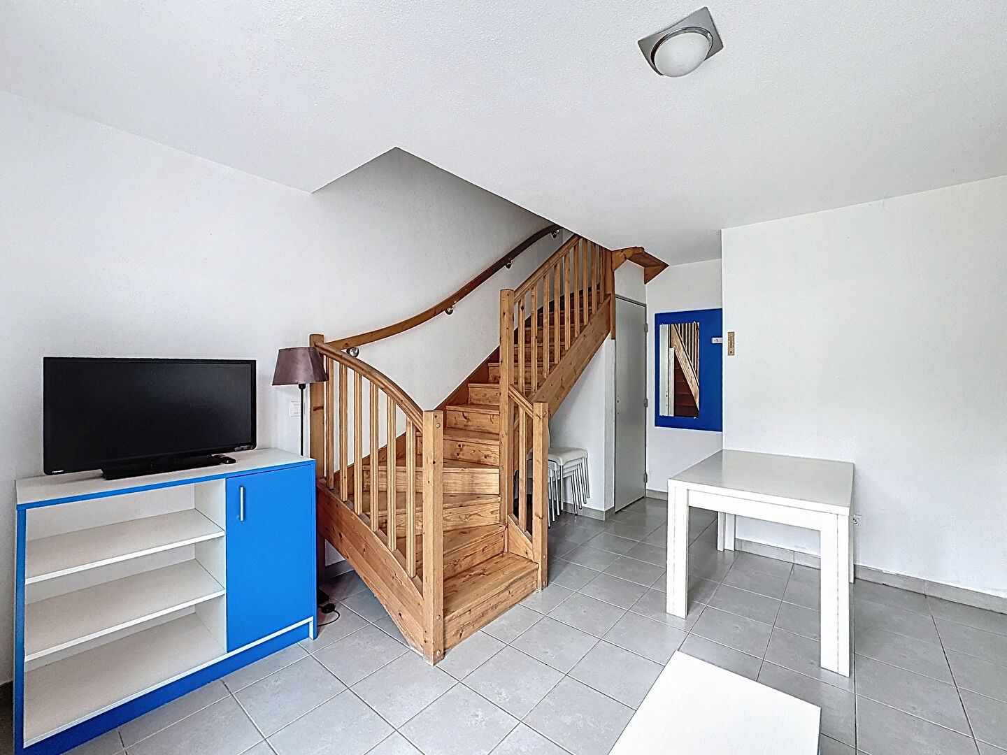 D'une surface de 30 m², ce deux pièces exposé Sud-Est se compose au rez-de-chaussée d'un séjour avec cuisine de 14 m² et d'un WC indépendant.