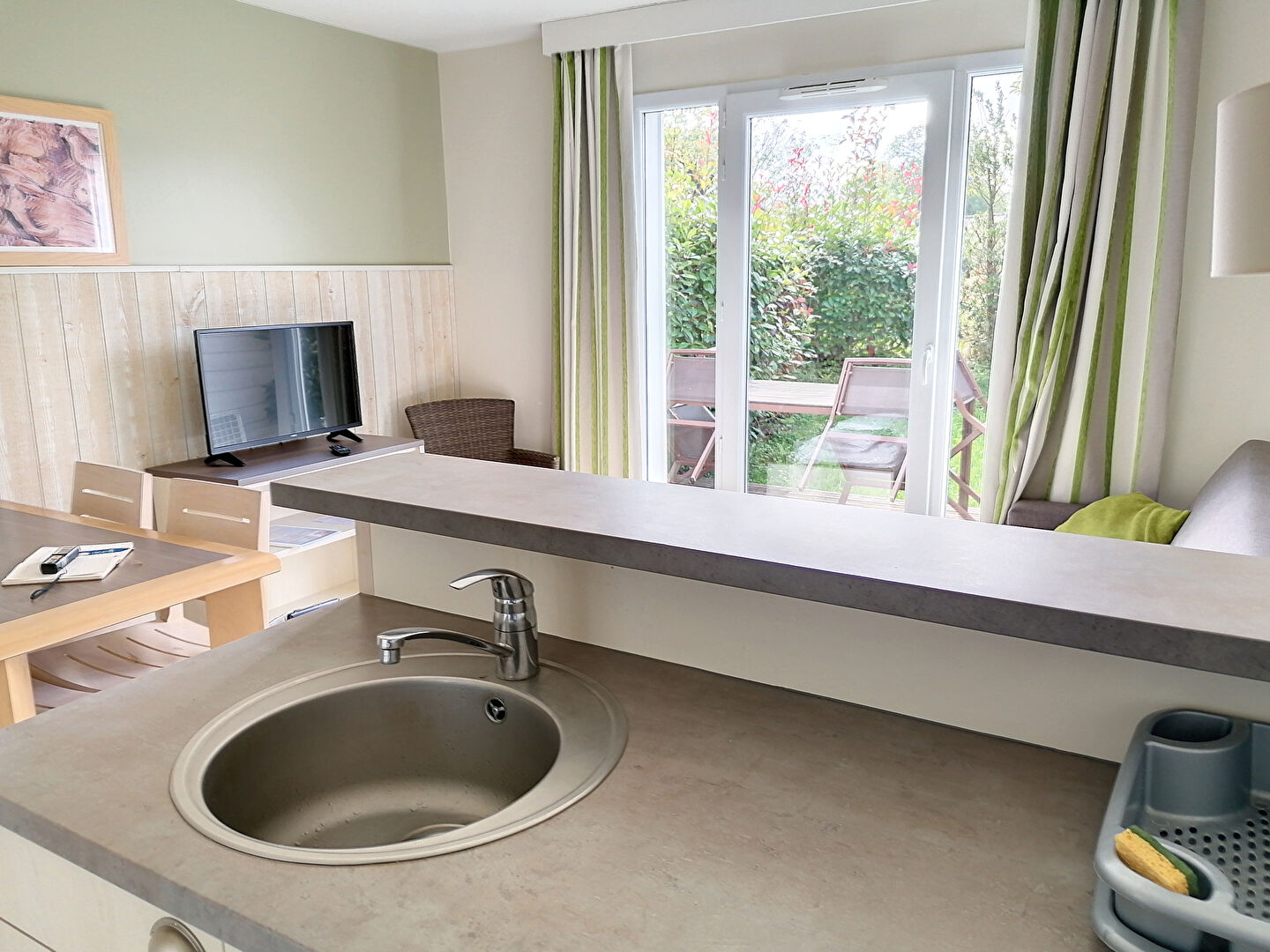 Le logement se compose d'une entrée, un wc séparé, un séjour avec cuisine ouverte donnant sur un jardin avec terrasse.