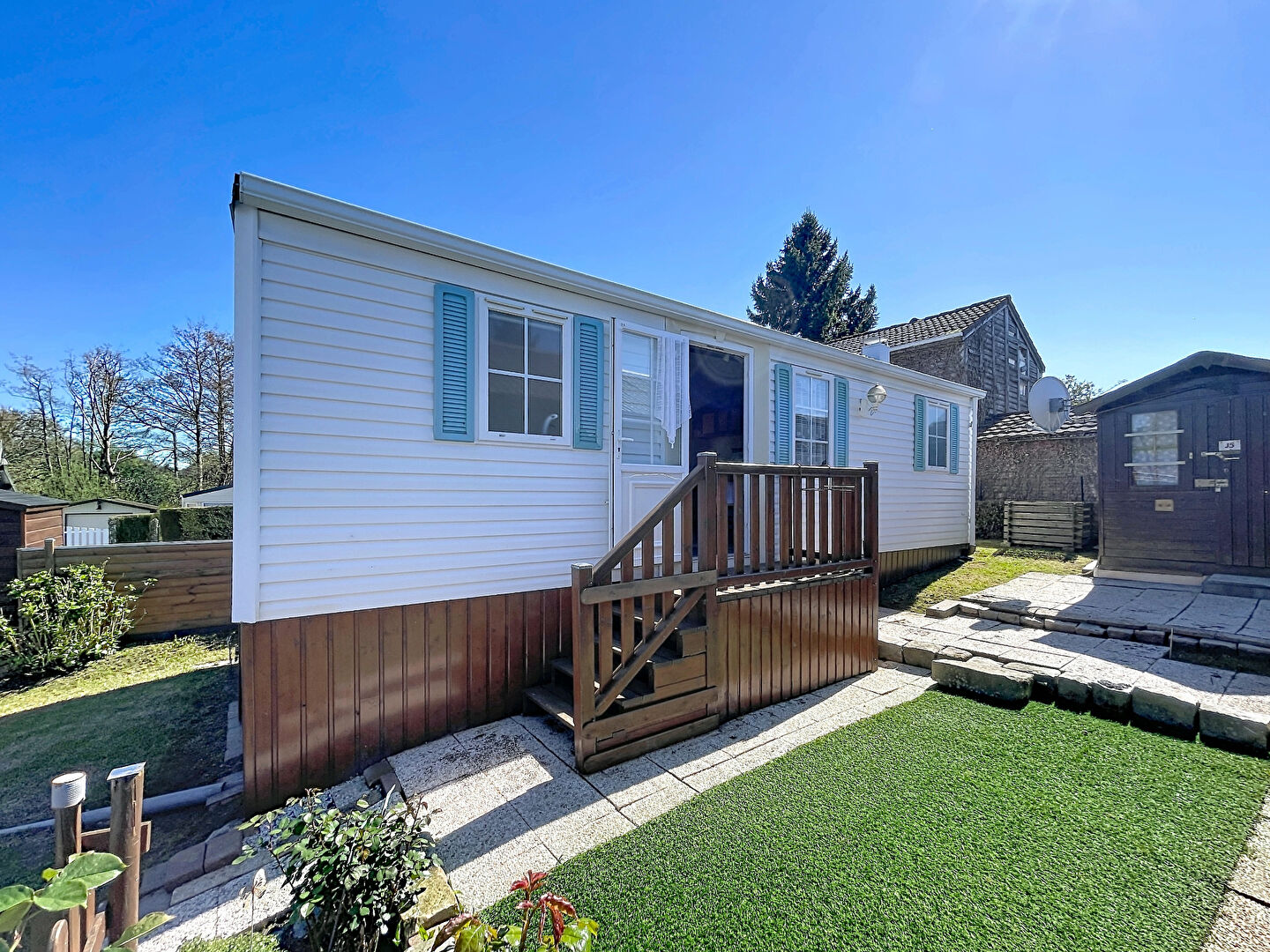 Un abri de jardin de 3,5 m² complète ce bien. Vous bénéficierez également d'un espace de stockage sous le mobil-home ainsi que de la possibilité de stationner un véhicule sur la parcelle.
