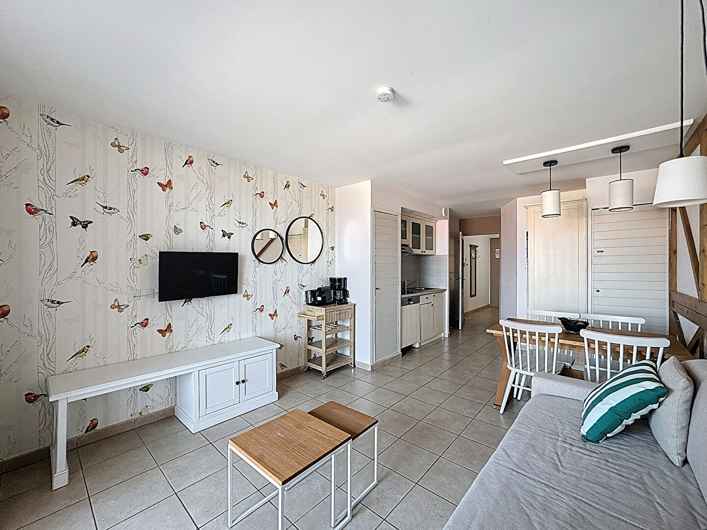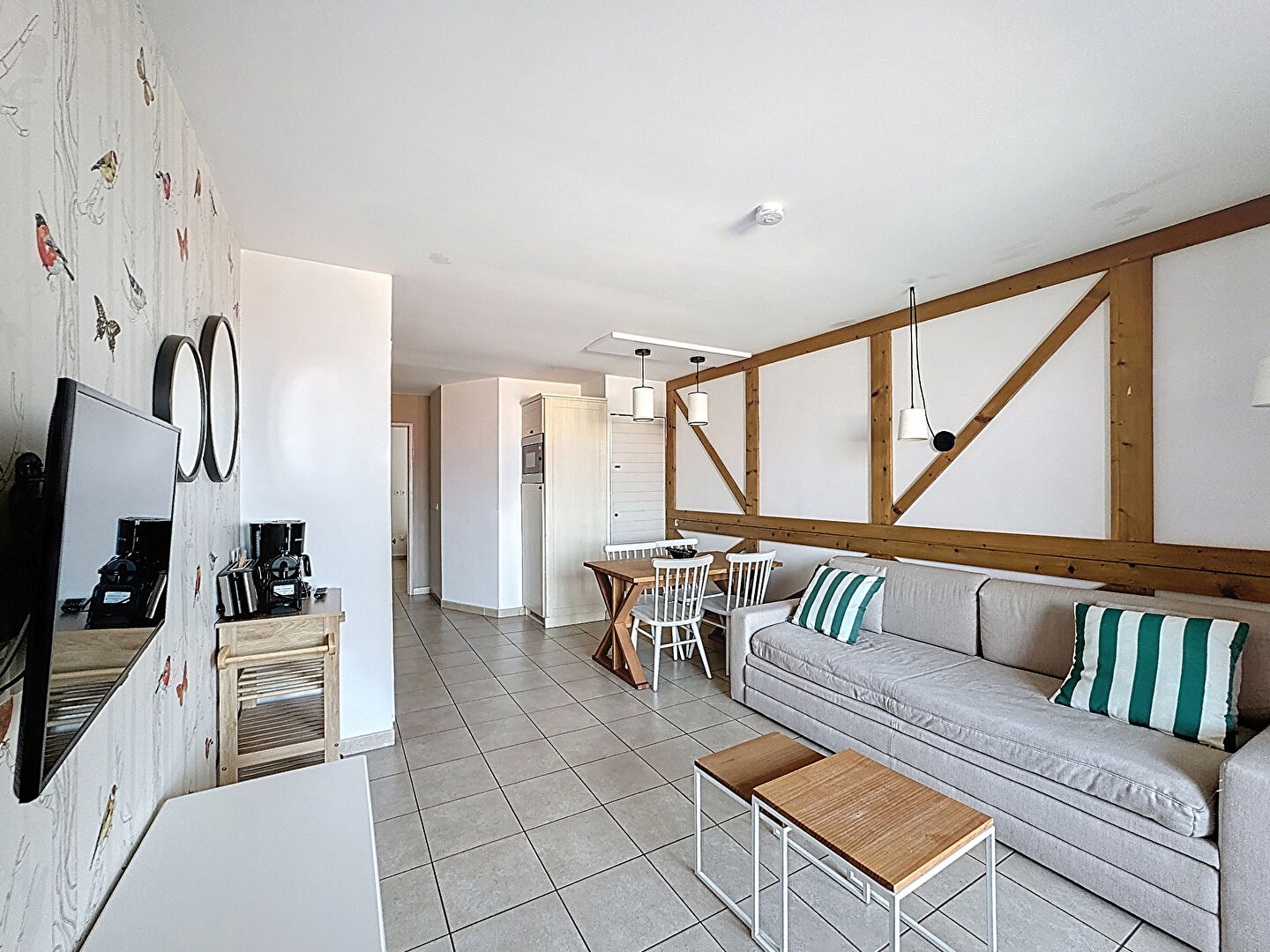 D'une surface de 35,5 m², il se compose d'un vaste séjour de 22 m² avec cuisine aménagée, d'une chambre cabine, et d'une salle de bain avec WC.