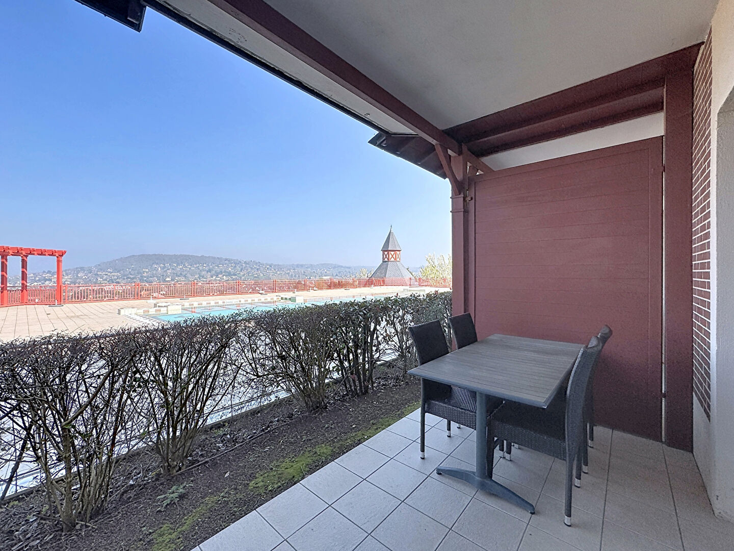 Vous profiterez également d'une agréable terrasse de 7 m², orientée Nord-Est, offrant un aperçu mer et une vue sur la piscine de la résidence. Situé en rez-de-chaussée, ce logement bénéficie d'un accès facile et d'un environnement calme et verdoyant.