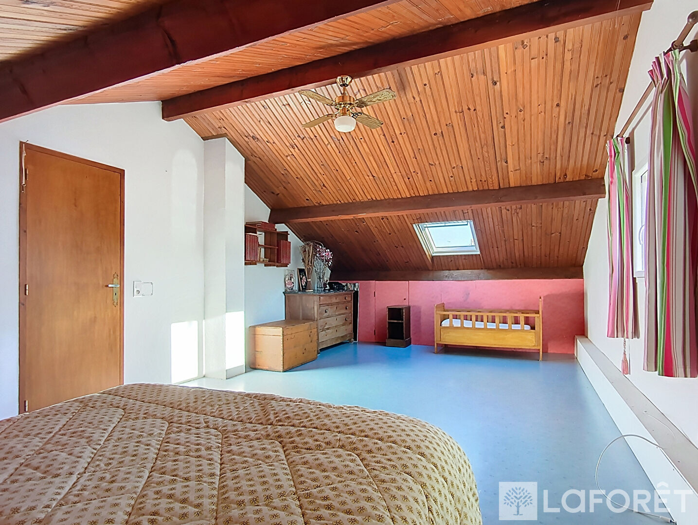 À l'étage, actuellement accessible par un escalier extérieur, se trouvent deux grands volumes d'environ 25 m² et 35 m², dont l'un est partiellement aménagé. Ces espaces offrent un fort potentiel d'aménagement selon les besoins, que ce soit pour des chambres supplémentaires, un bureau ou un espace loisirs.