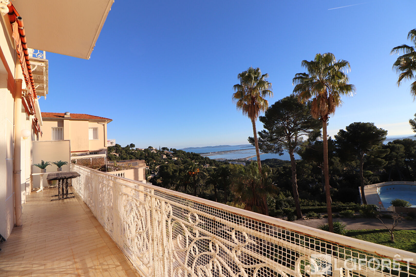 Cet appartement vous séduira par son calme, ses prestations et sa vue dégagée sur le parc, la mer, le double tombolo et la presqu'île de Giens.