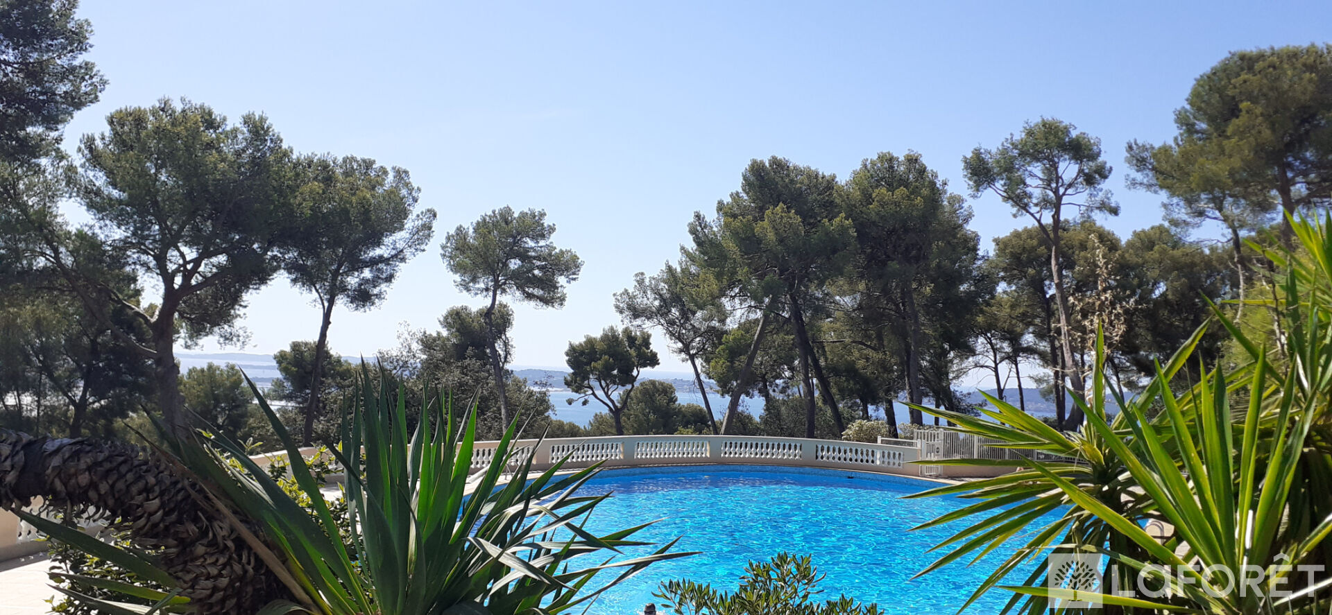 Cet appartement vous séduira par sa vue dégagée et unique sur le parc, la mer, la presqu'île de Giens et son double tombolo.