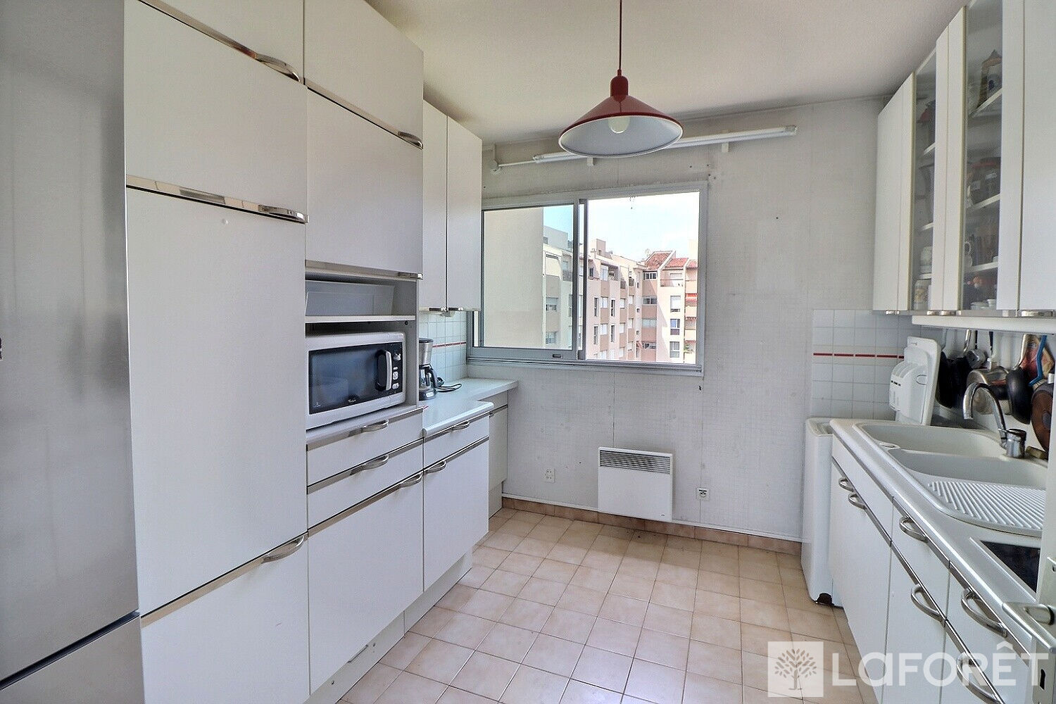 Cet appartement traversant, lumineux de 84 m² est composé d'une entrée donnant sur un double salon séjour coté sud avec accès à la terrasse, cuisine aménagée et équipée , dégagement avec placards desservant les trois chambres dont deux donnant sur une terrasse, une salle d'eau et un WC indépendant.