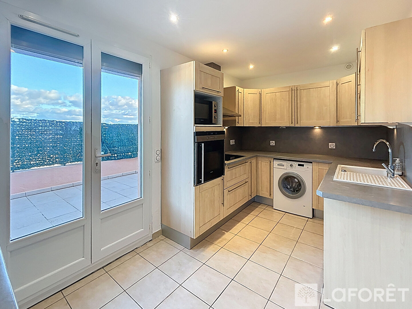 La terrasse de 43 m2, au-dessus de tous les immeubles voisins vous permettra de recevoir, avec un aperçu mer.
