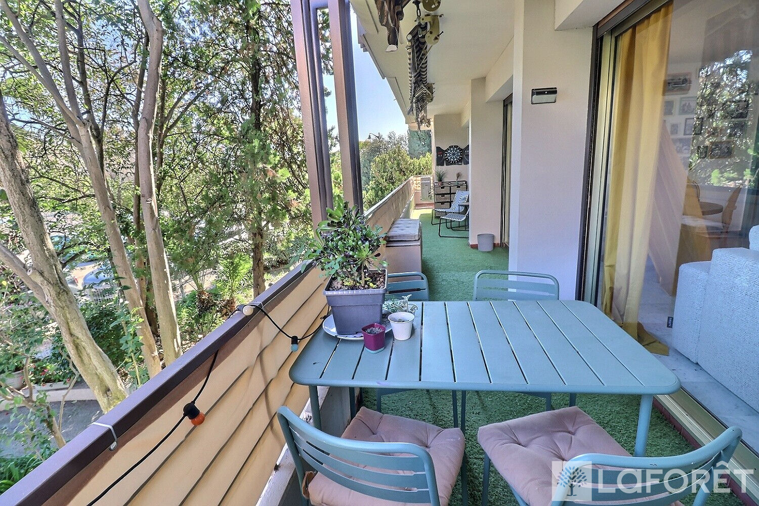 Il bénéficie d'un vaste séjour exposé Est, donnant sur la terrasse où vous pourrez déjeuner, avec vue sur le jardin arboré de la résidence.