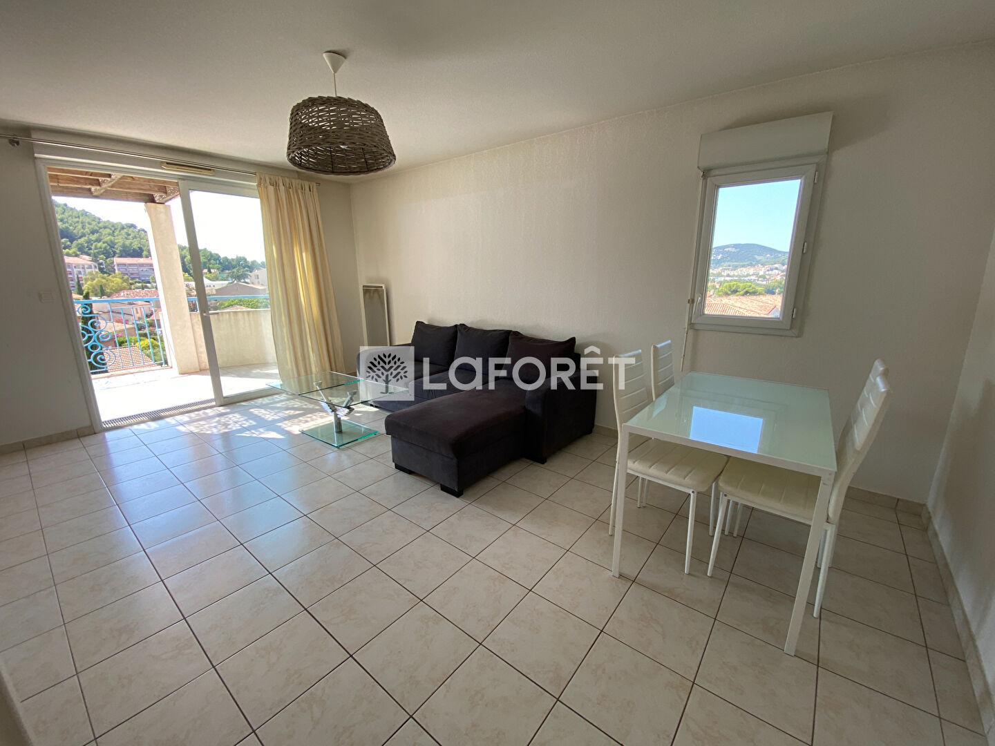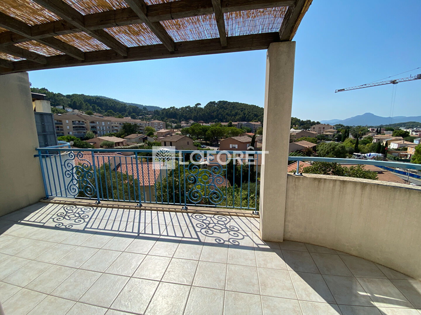 Le séjour offre un espace salon et salle à manger lumineux grâce à sa grande baie vitrée, et donnant sur une terrasse panoramique de 12m².