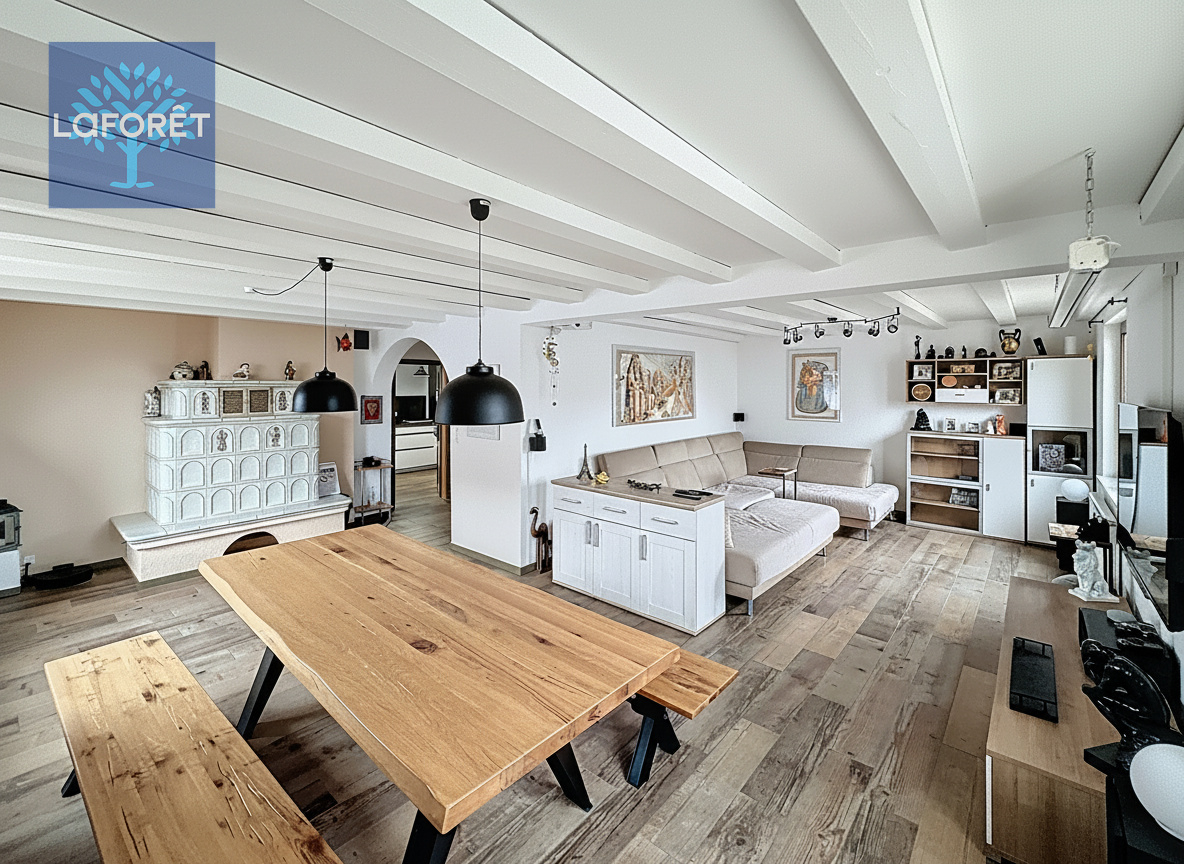 - Espace de vie avec un grand séjour lumineux de plus de 40m² et son kachelofe,