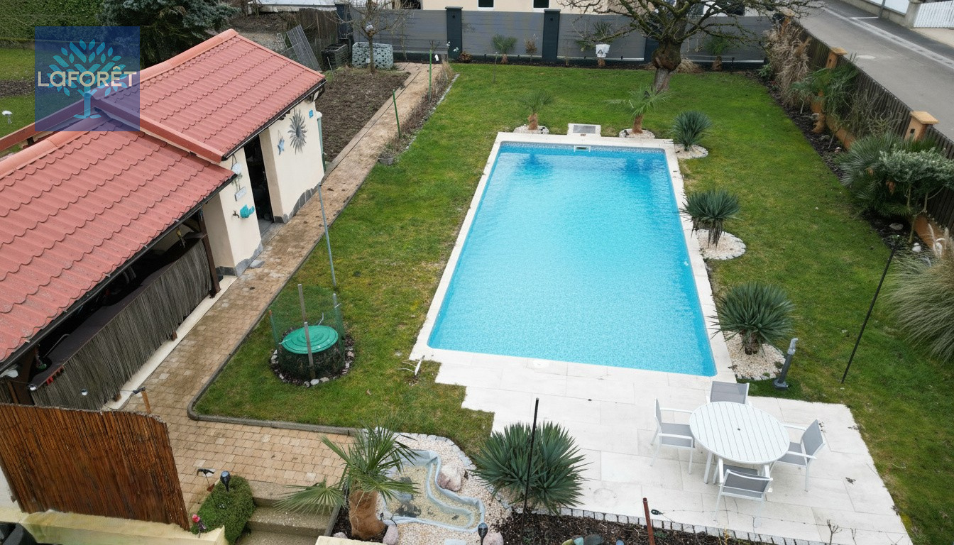 - une magnifique piscine chauffée 9x3,8 m avec 1,60m de profondeur et son jardin arboré parfaitement entretenu.