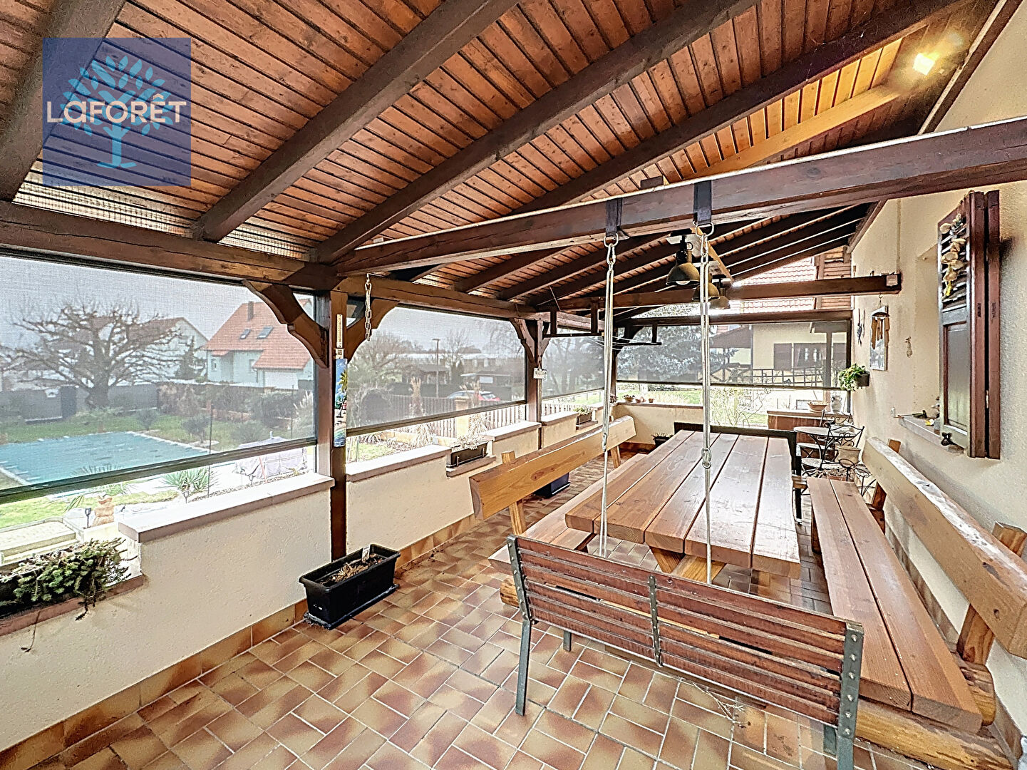 - Une grande terrasse avec protection solaire électrique (possibilité de fermeture totale).