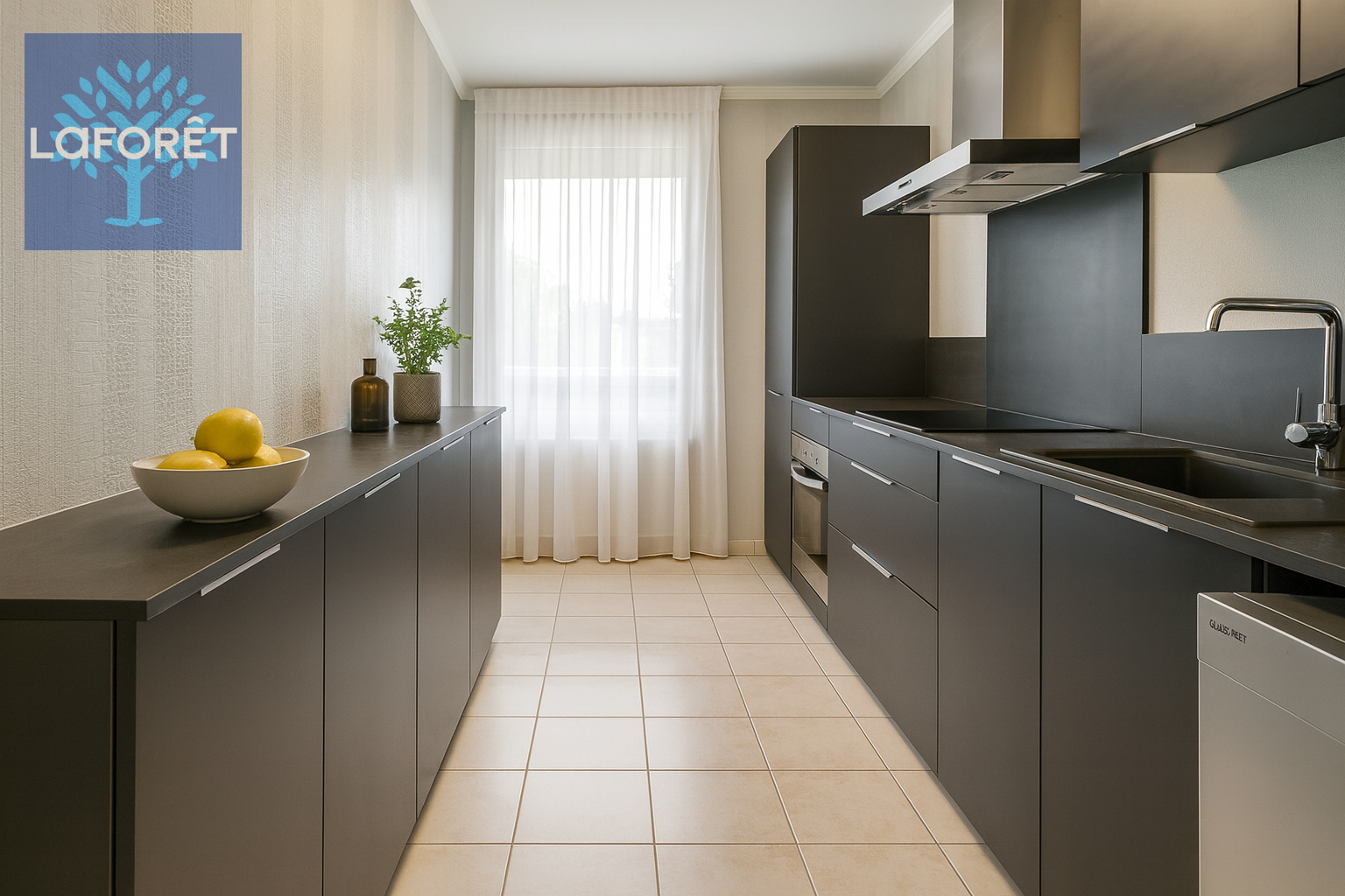 En annexe, l'appartement dispose d'un garage privatif de 14 m² en sous-sol ainsi que d'une place de parking extérieure - présence de bornes de recharge électrique sur le parking.