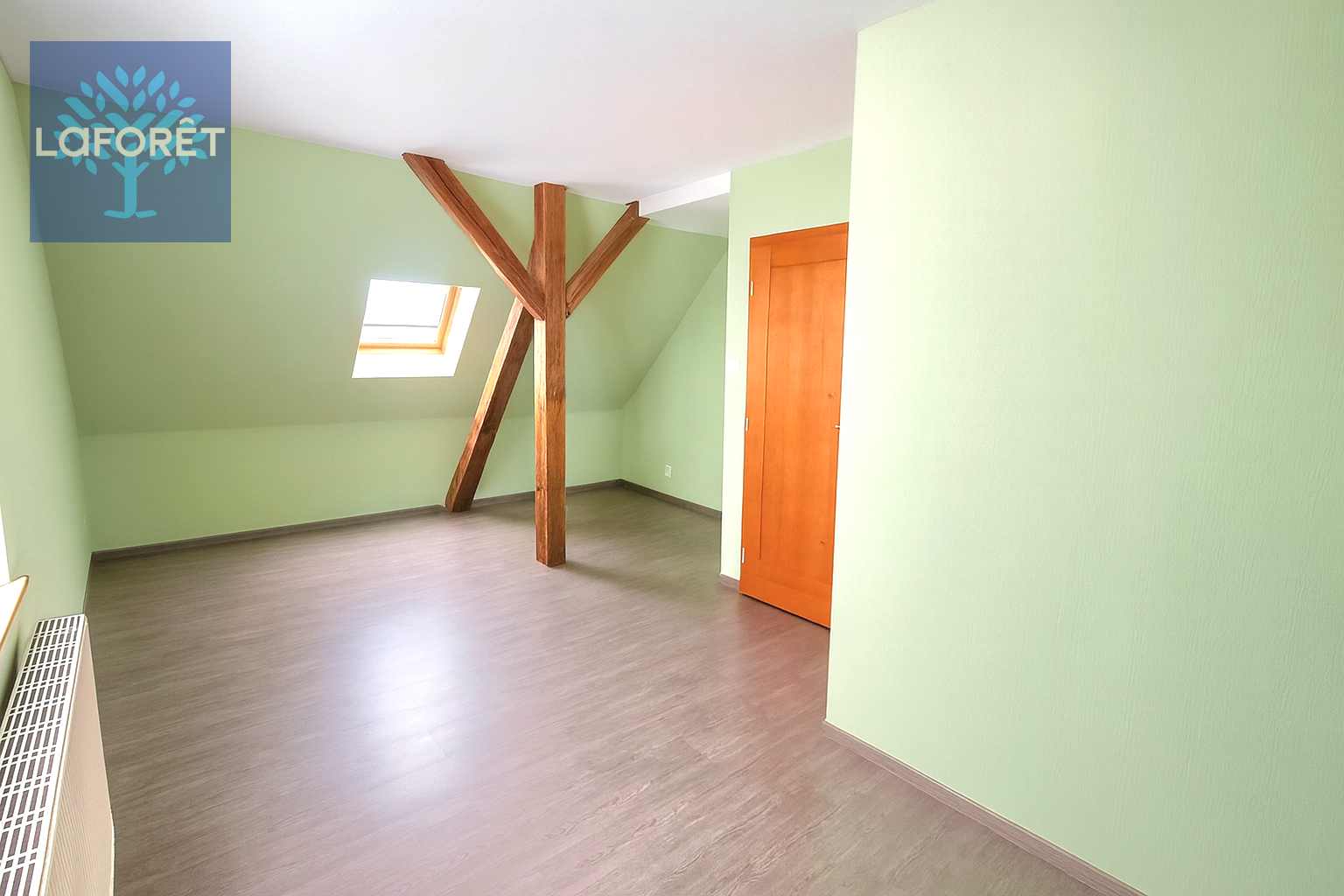 Le rez-de-chaussée propose un grand salon-séjour lumineux, une cuisine séparée partiellement meublée, une chambre spacieuse et un WC indépendant. À l'étage, deux belles chambres dont une avec dressing attenant de 7 m² ainsi qu'une grande salle de bain de 9 m² à rafraîchir offrent un espace confortable et fonctionnel.