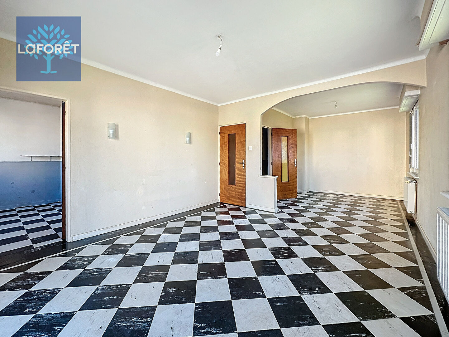 Elle se compose comme suit : 3 chambres lumineuses : 10, 11 et 13 m², un salon de 27 m², un espace cuisine, une salle de bains rénovée et un WC séparé.