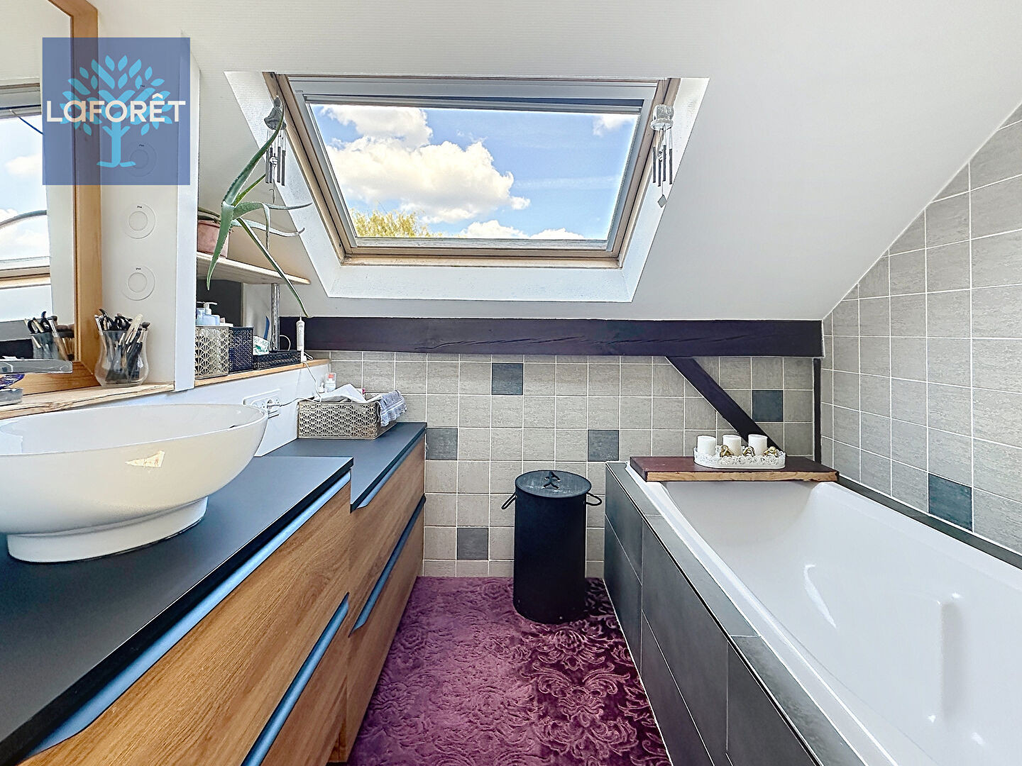 À l'étage, les combles ont été aménagés en une spacieuse suite parentale comprenant une salle de bain, des WC indépendants et un vaste dressing pouvant également faire office de bureau.