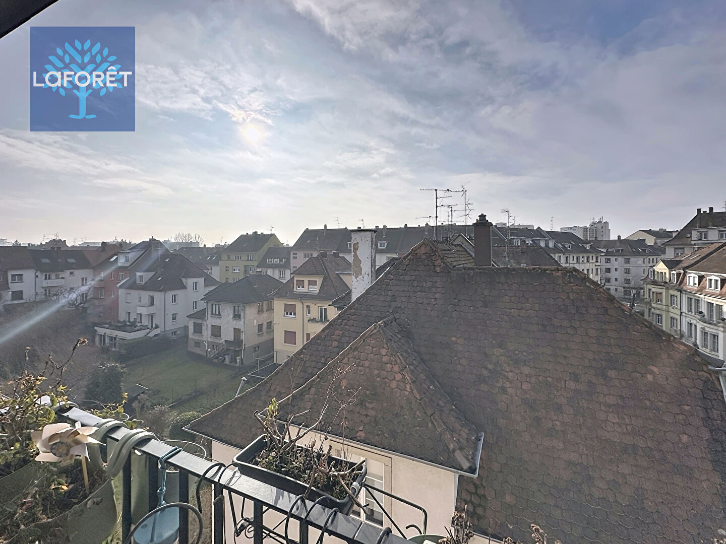 Il se compose d'un vaste salon-séjour, d'une cuisine équipée avec un balcon offrant une vue imprenable sur les toits de Strasbourg, ainsi que deux chambres confortables et un bureau idéal pour le télétravail. Une salle de bain moderne et un WC séparé complètent ce bien.