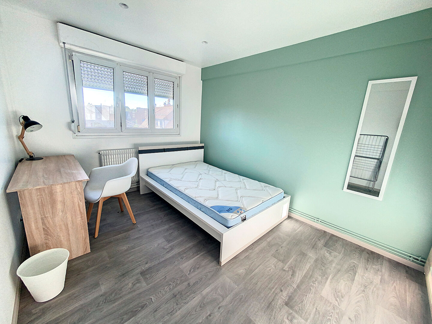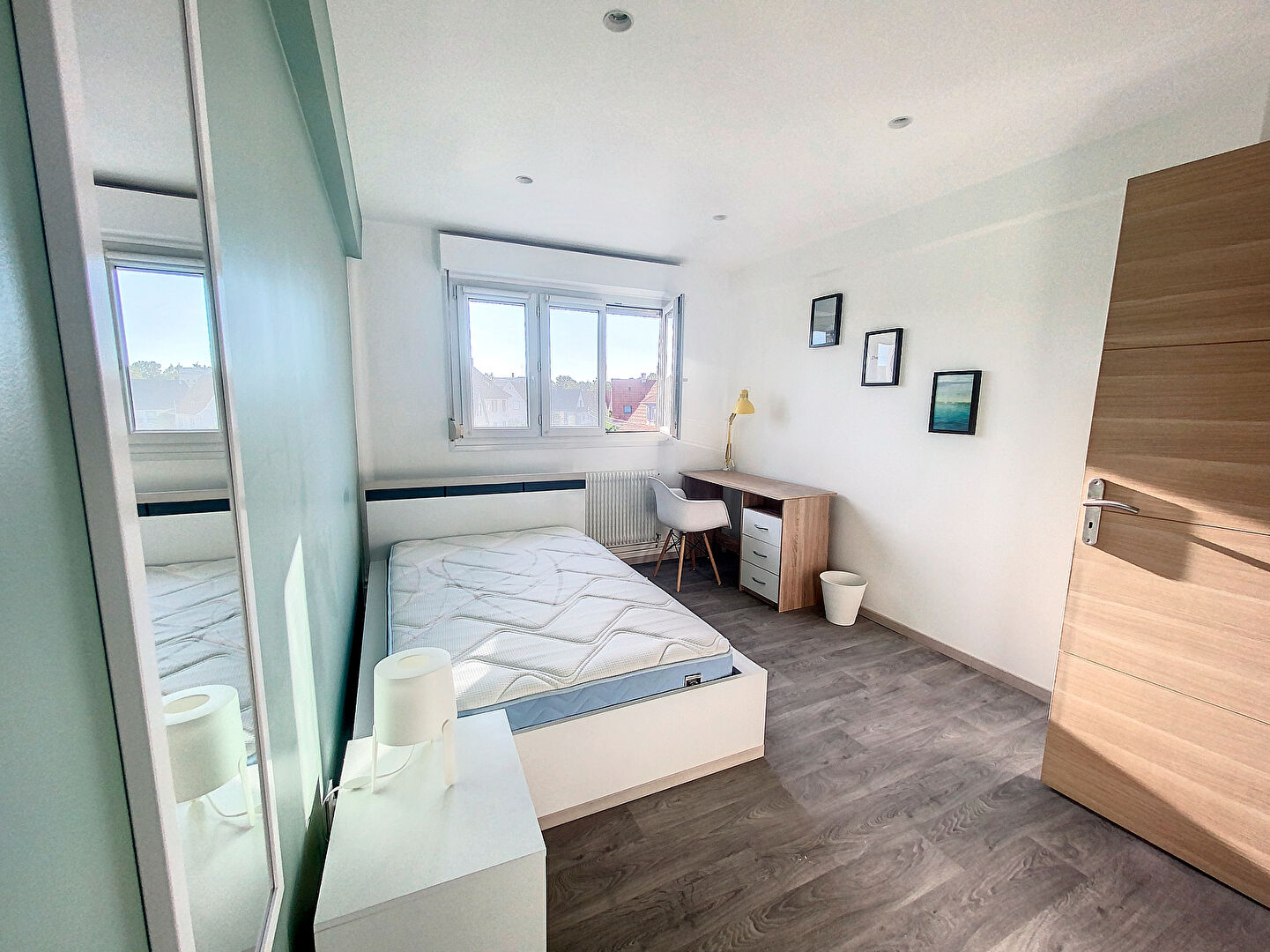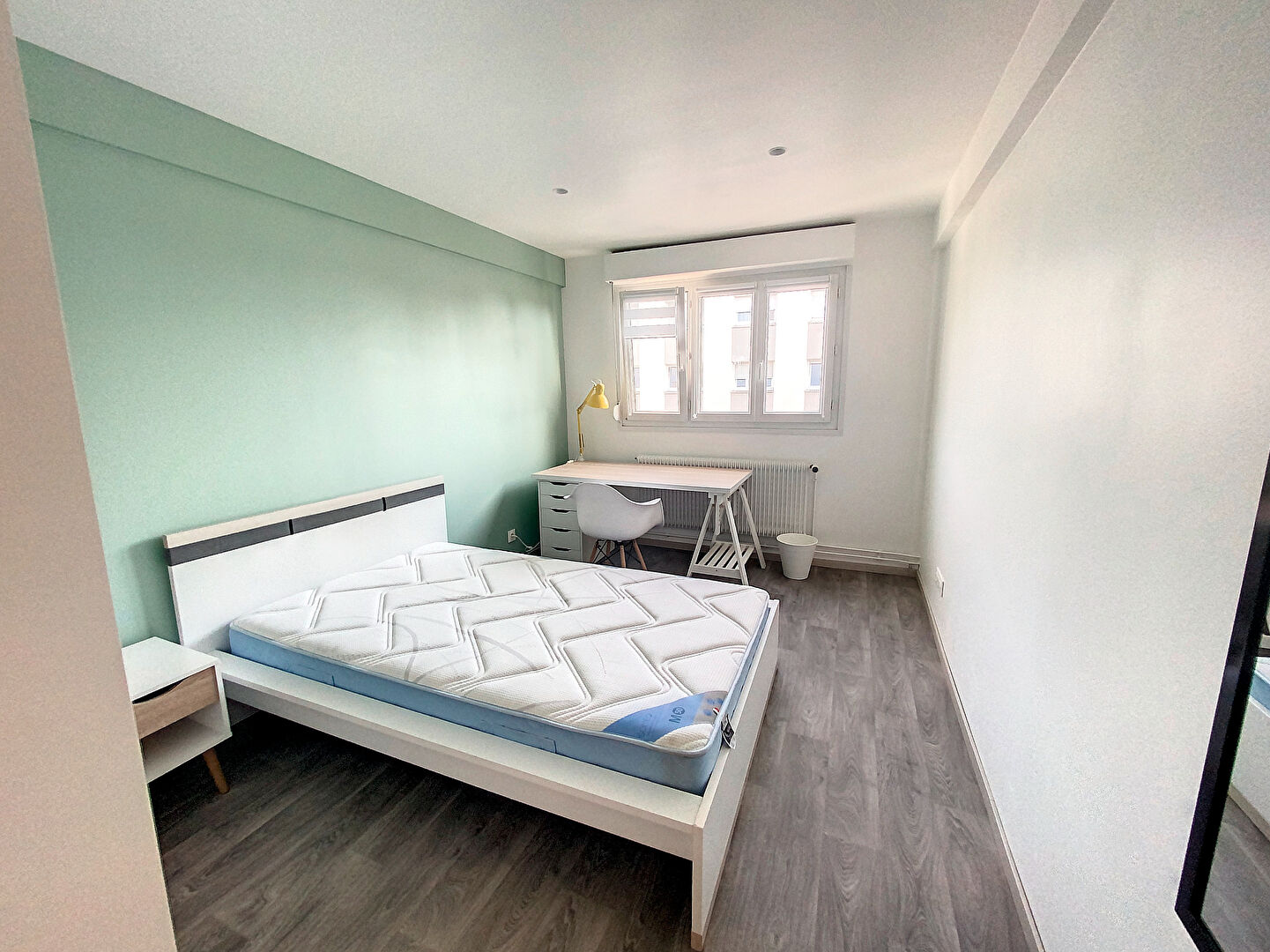 Toutes les chambres disposent d'un lit double, d'une armoire, d'un bureau, d'une chaise et d'une lampe de chevet.