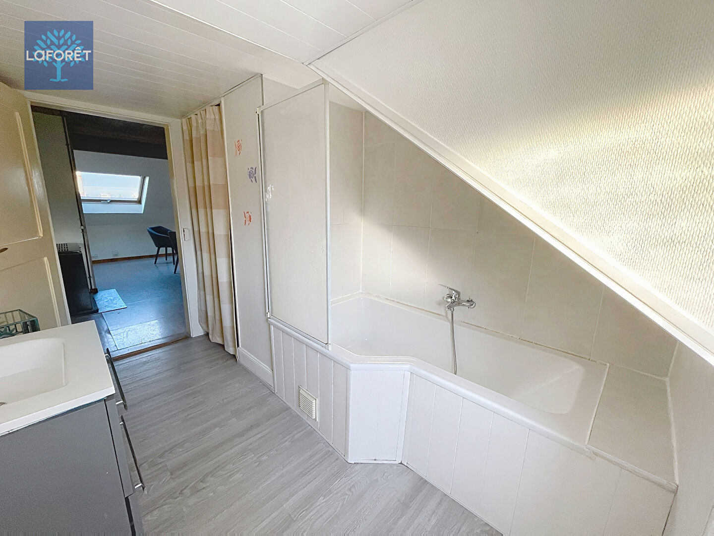 L'appartement se compose d'une grande pièce de vie, d'une cuisine aménagée et équipée, d'une chambre séparée, d'une pièce dressing ainsi que d'une salle de bains avec baignoire et wc.