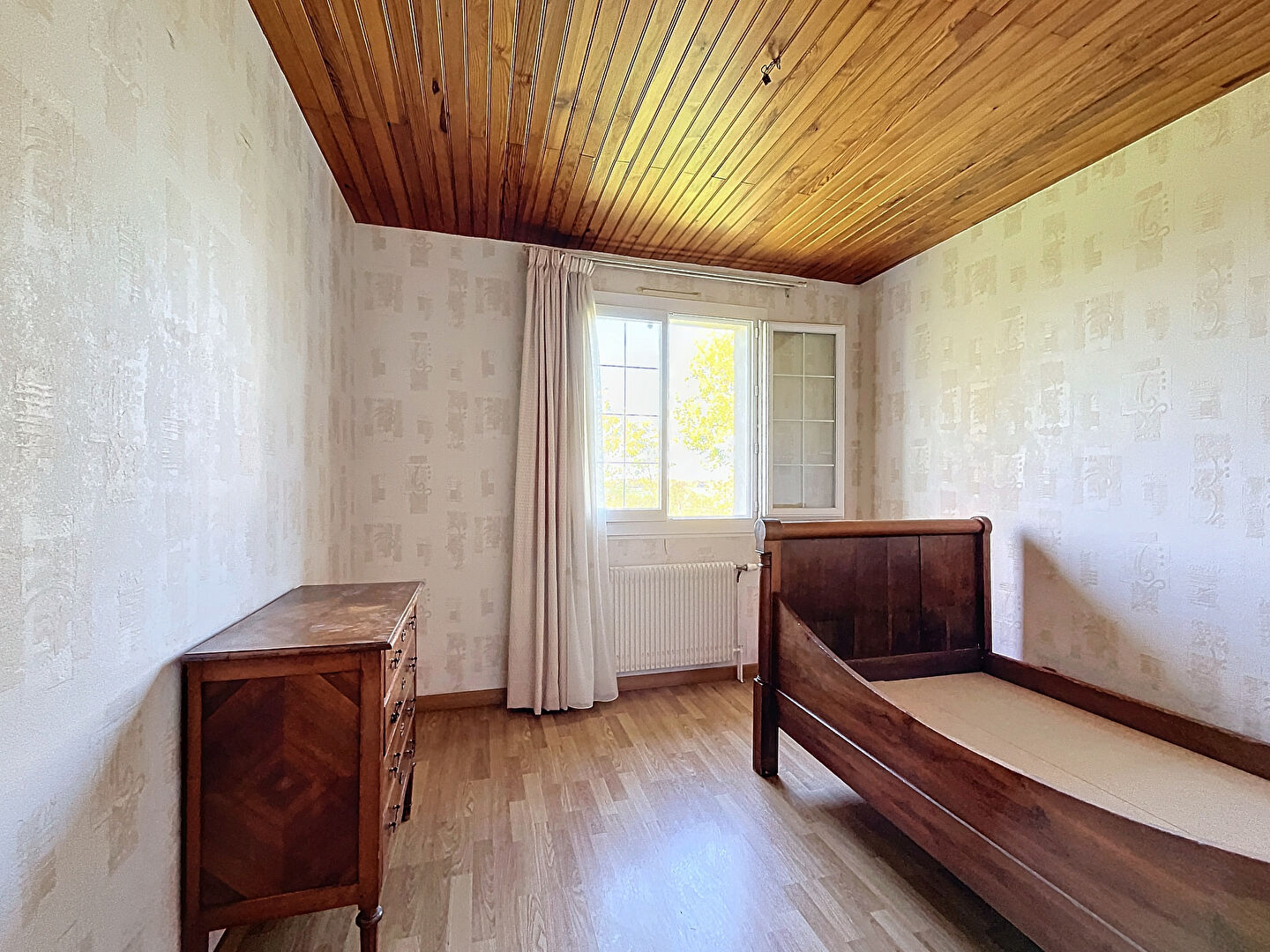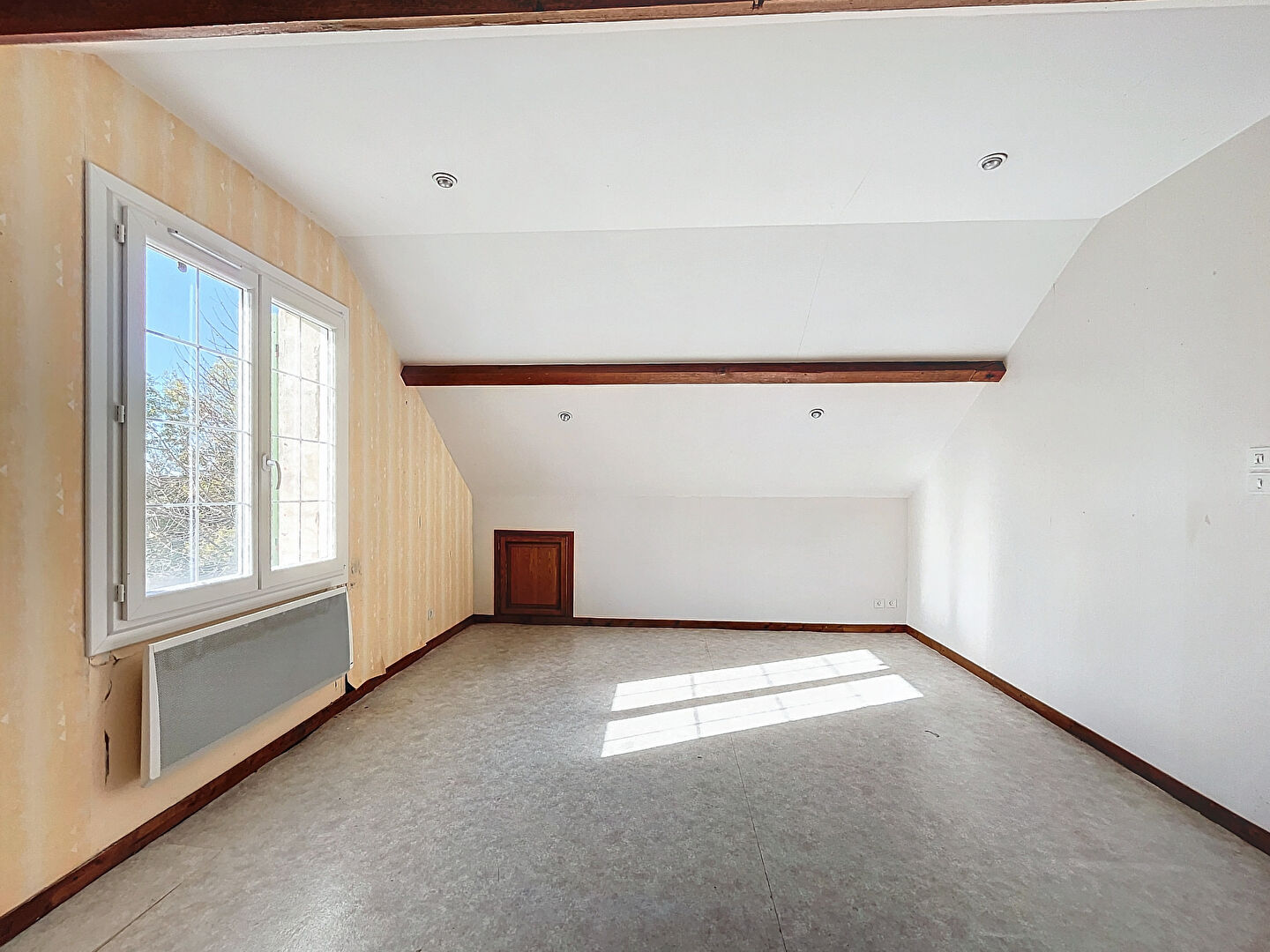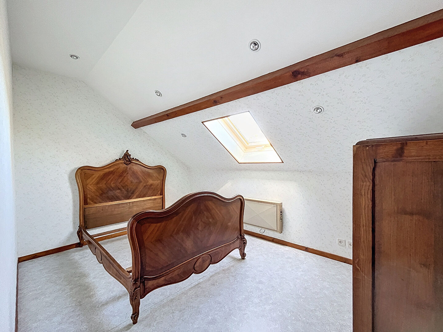A l'étage: deux chambres, wc et 3 greniers offrent de généreux espaces de rangement.