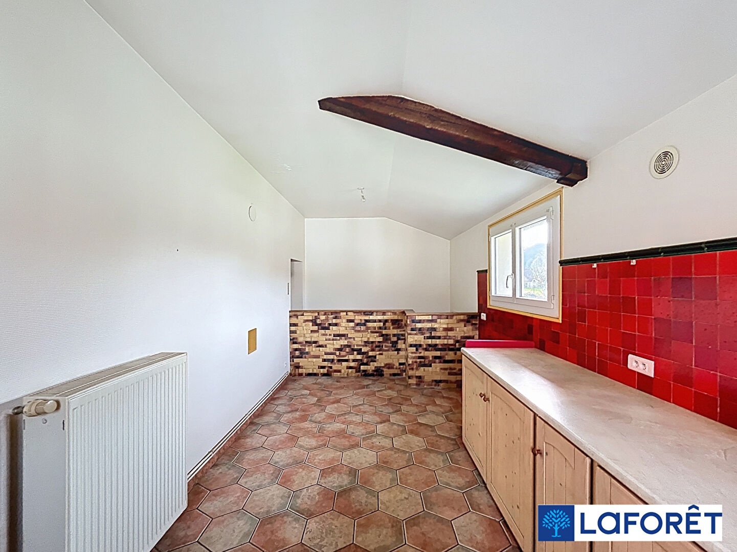 Celle ci se compose en rez de chaussée d'une cuisine lumineuse, d'un séjour et d'une chambre pouvant faire office de salle à manger.