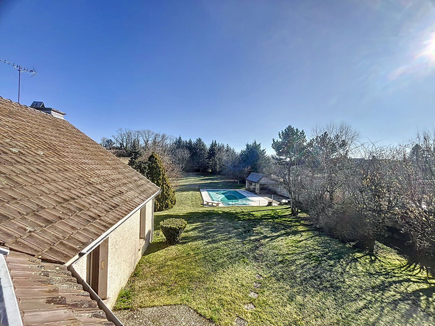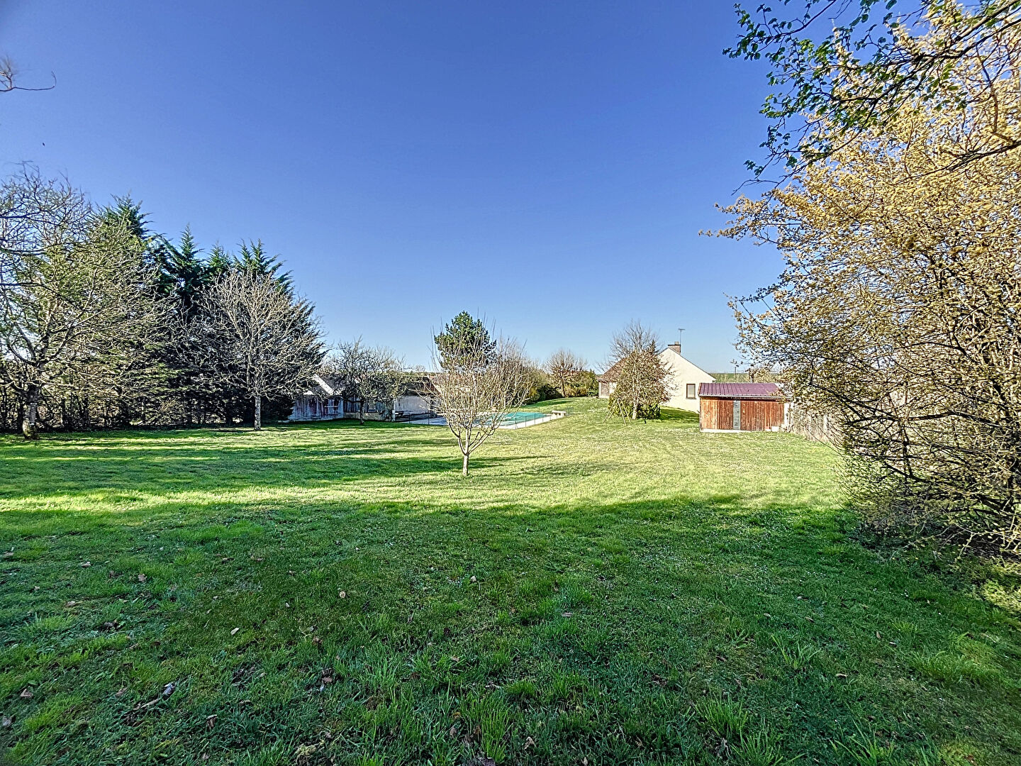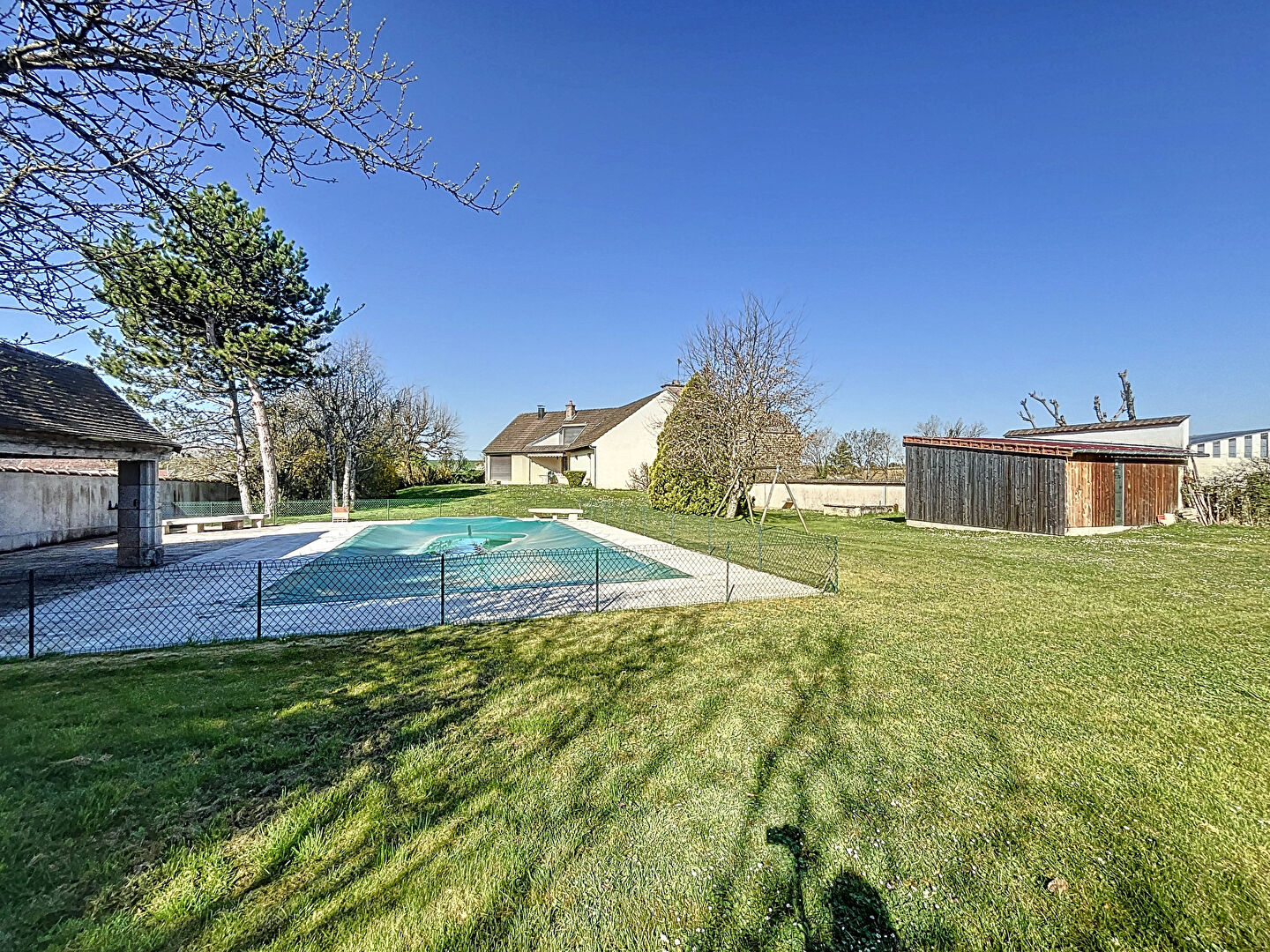 le terrain arboré offre un espace de jeu pour les enfants, pour les journées et soirées chaudes de l'été une piscine sécurisé s'aura vous rafraichir.