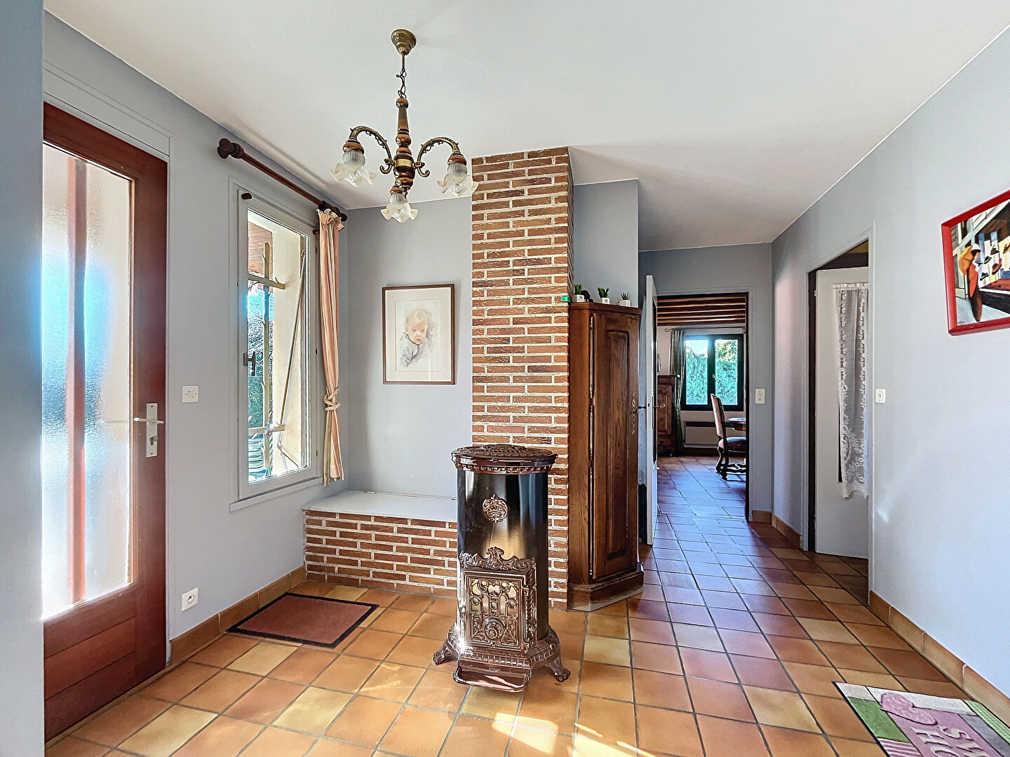 Dans l'entrée un poêle à bois et une cheminée centrale dans le salon vous confère un confort cocooning pour des soirées conviviales.