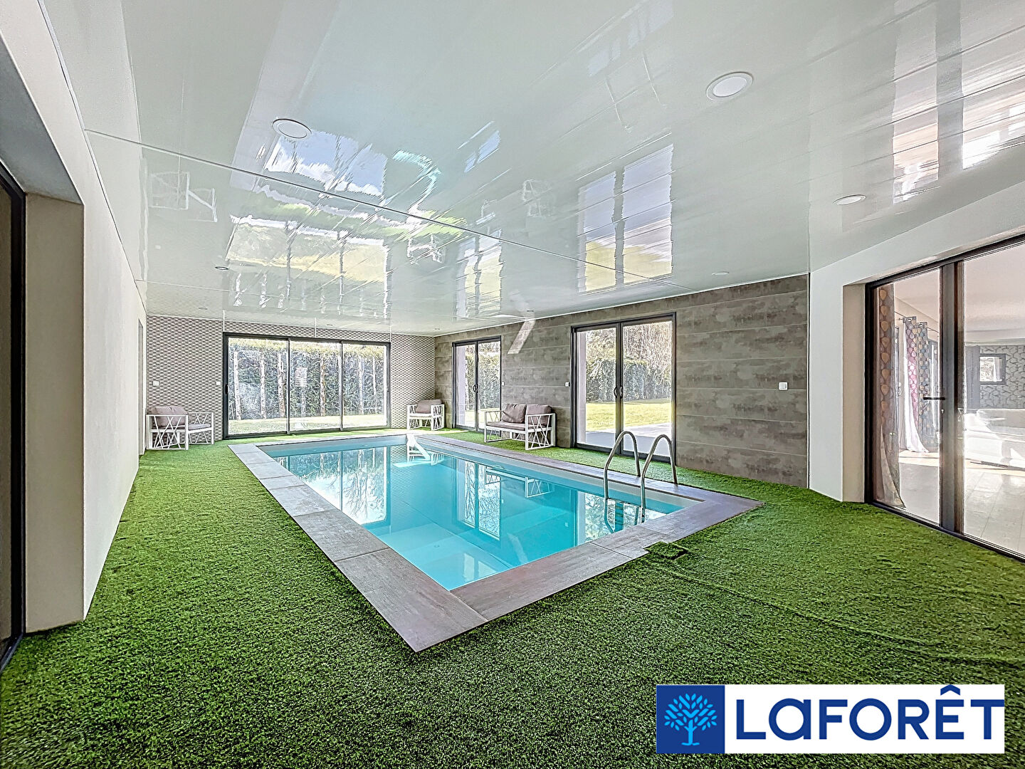 Coup de coeur assuré : une piscine intérieure chauffée réalisée en 2019 avec déshumidificateur, pour en profiter toute l'année, été comme hiver.