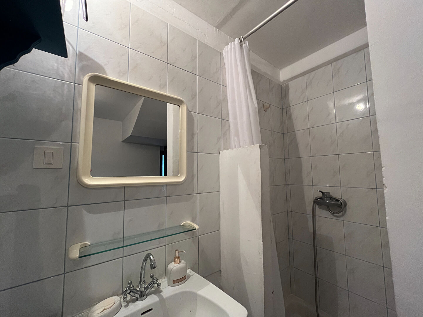 Cet appartement situé au rez-de-chaussée d'une batisse dispose d'une pièce de vie, une chambre avec sa salle d'eau, toilettes et d'une terrasse.