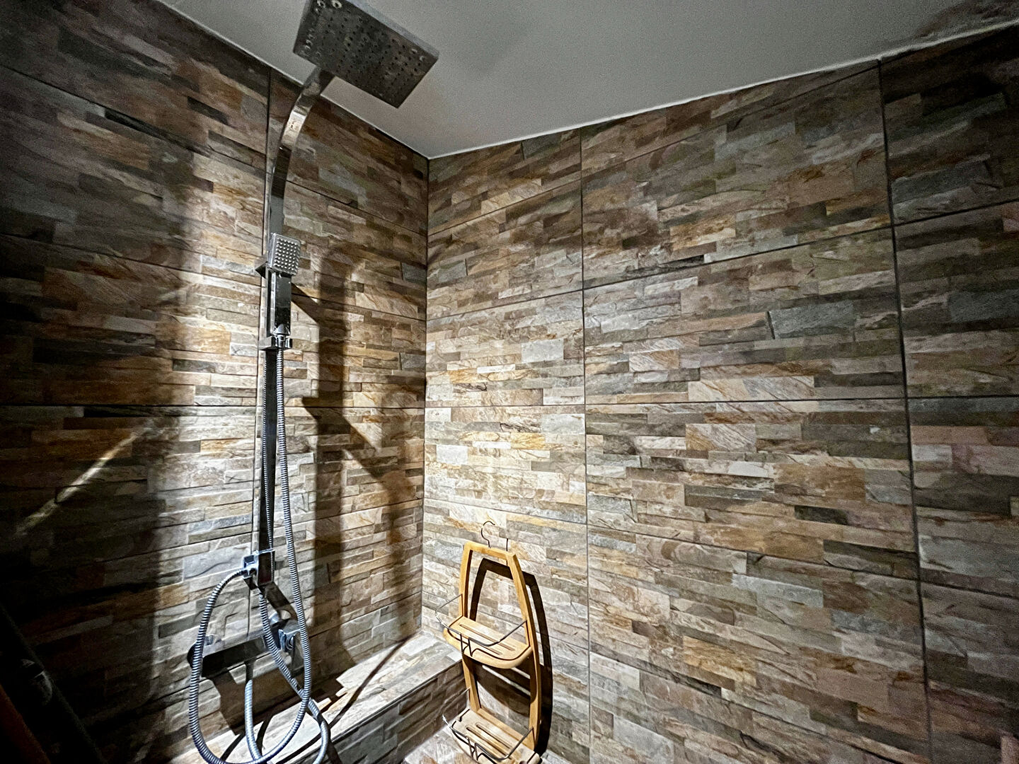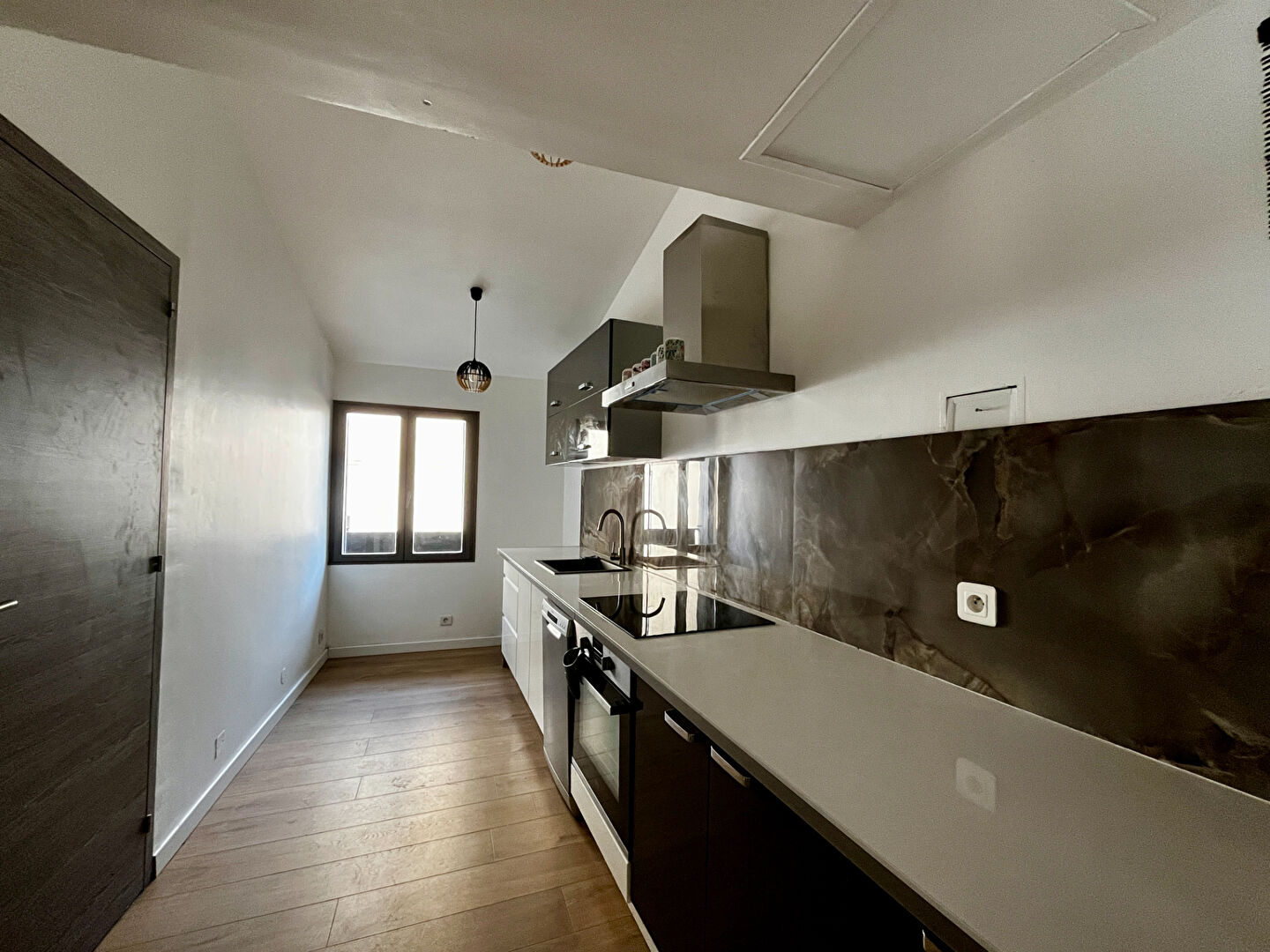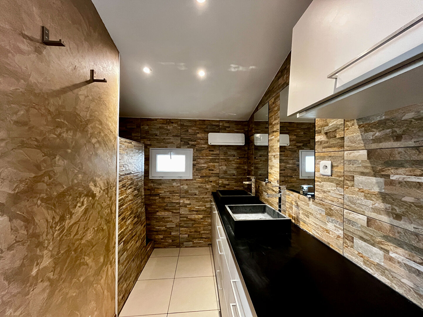 Vous disposez d'une cuisine moderne aménagée et équipée, d'une pièce de vie climatisée, d'une belle salle d'eau avec double vasque, grande douche et coin machine a laver, de 2 chambres dont une avec dressing et clim. Parquet massif dans tout l'appartement .
