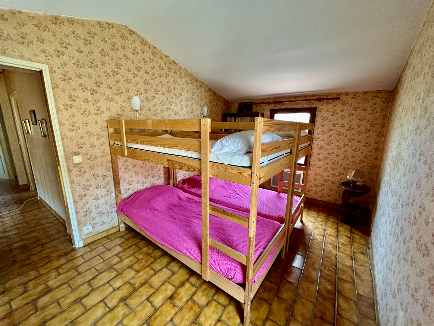 A l'étage, 3 chambres ente 9 et 13m2 , une salle de bain avec WC de 3.60m2 .