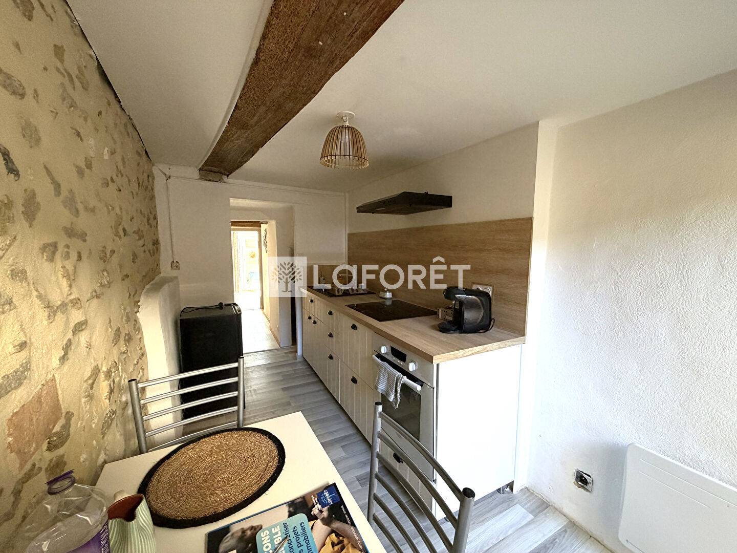 Très lumineux par ses fenêtres traversantes, nombreux rangements.