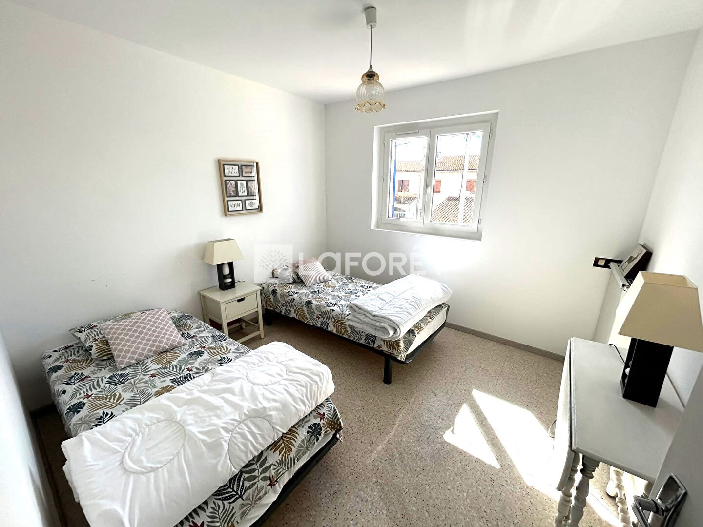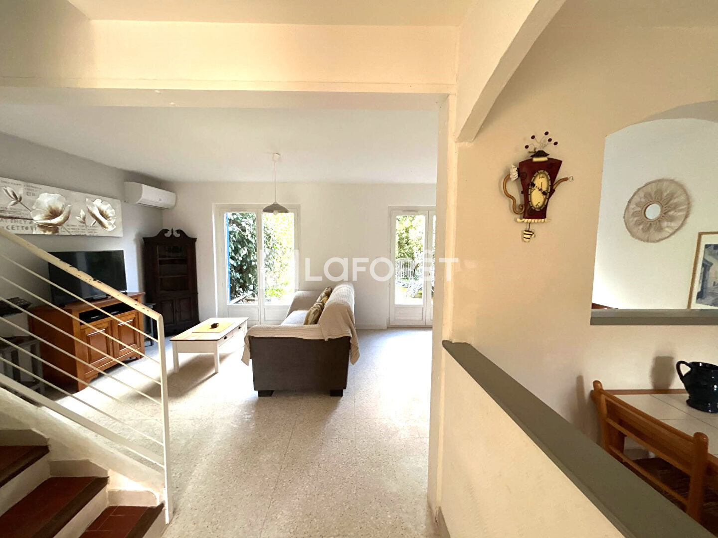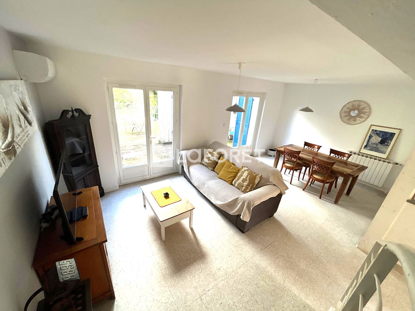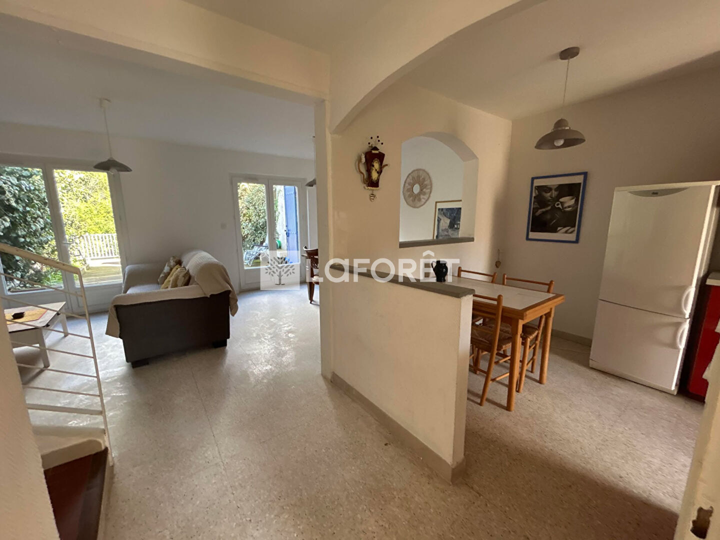 A proximité immédiate du centre-ville, maison meublée de T5 avec garage. Elle se compose au rez-de-chaussée d'une entrée, d'une salle d'eau, d'un WC indépendant et d'une pièce de vie climatisée avec cuisine ouverte aménagée et équipée.