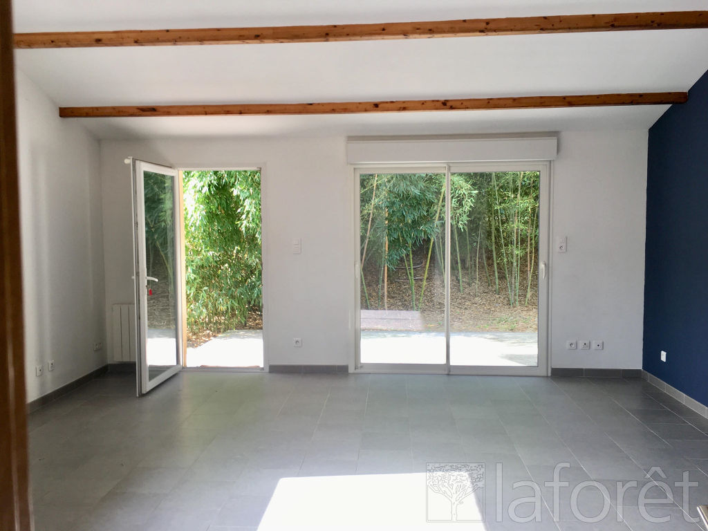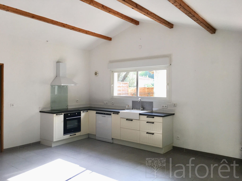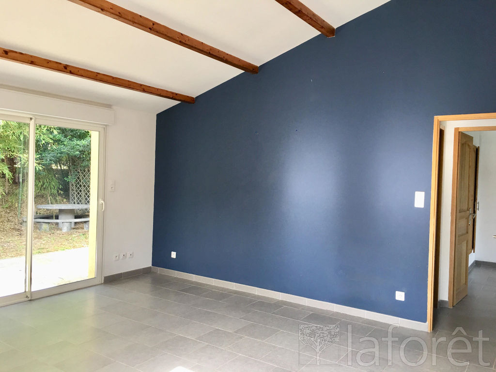 En campagne, dans un environnement très calme et arboré, jolie maison de plain pied de type 3, un jardin clos, une grande terrasse et des places de stationnement. Elle comprend un séjour ouvert sur cuisine aménagée et équipée d'une hotte un cellier, 2 chambres avec placard, 1 sdb, et wc séparés.