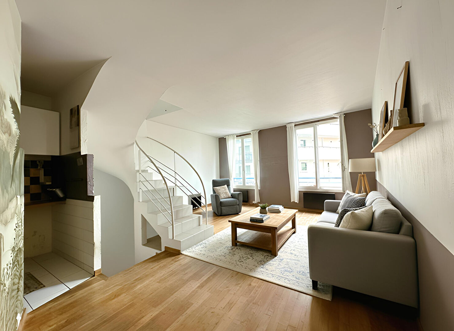un séjour baigné de lumière, deux chambres sublimées par un plafond cathédrale, une ambiance chaleureuse où l'on imagine déjà des moments partagés, et la promesse d'un lieu de vie singulier.