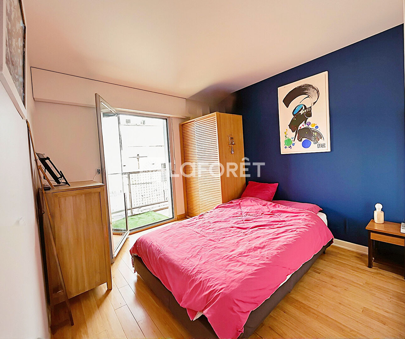 La grande chambre, avec placard intégré et accès au balcon, offre un espace de repos confortable et fonctionnel.