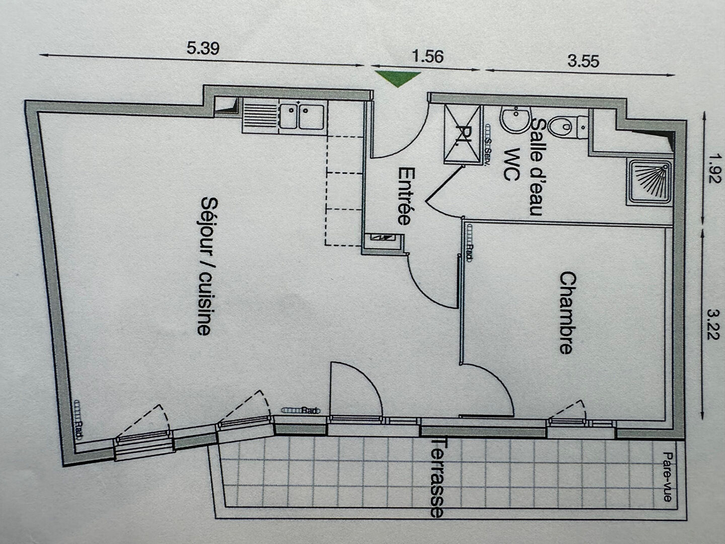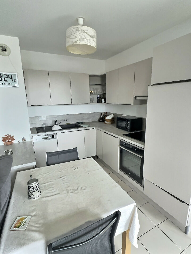 (bâtiment BBC) calme et sécurisée, un appartement de type F2 d'environ 51m² situé au 4ème et dernier étage avec ascenseur, il comprend une entrée avec placard, une salle d'eau avec wc, un grand séjour avec cuisine aménagée ouverte d'environ 30m² donnant sur un balcon , une chambre donnant également sur le balcon, un parking au sous-sol, un local à poussettes et un local à vélos complètent ce bien. sans vis à vis, très lumineux et au calme.